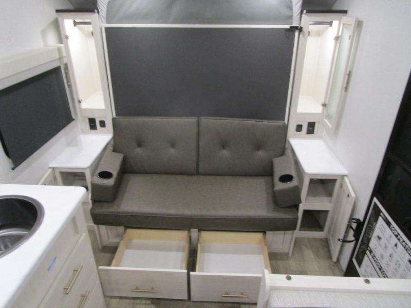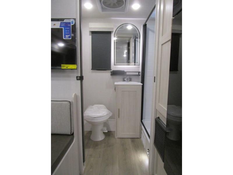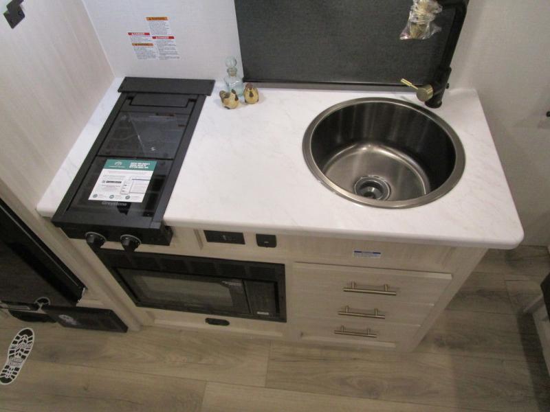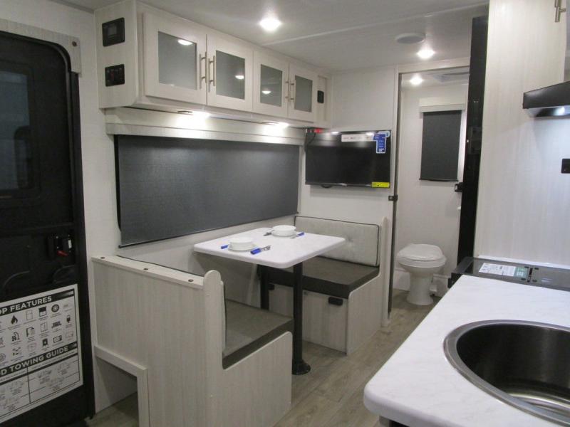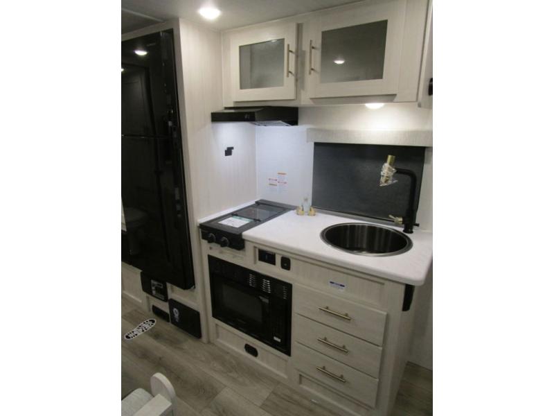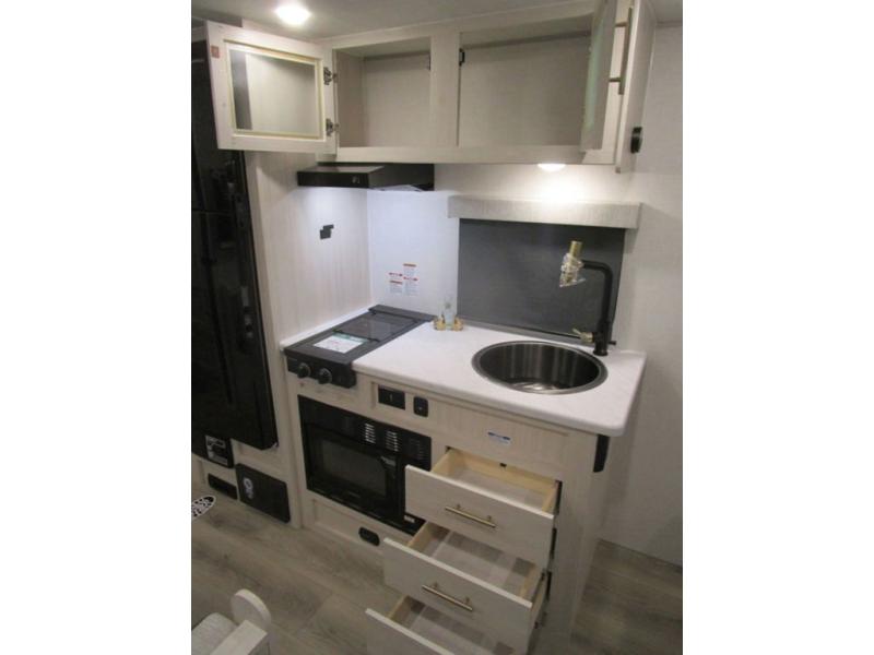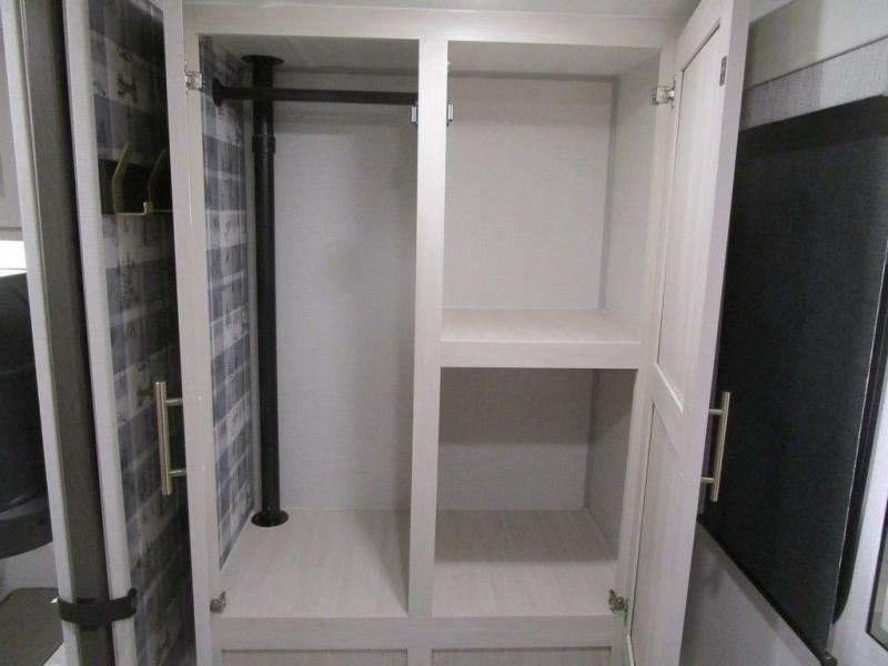 You're going to love all of the conveniences and versatility of this travel trailer! The front Murphy bed folds away to reveal the sofa which gives you a comfortable place to sit during the day and to sleep at night too. The rear full bath features everything you will need to get squeaky clean each morning as well as a large linen closet for clean towels. After you have whipped up your best meal with the two-burner cooktop, you can head to the booth dinette and enjoy eating it there comfortably. This model also includes the Hood River Edition that comes with Mud Legend all terrain tires with TPMS, a MaxxAir vent cover, and 12V tank heaters!