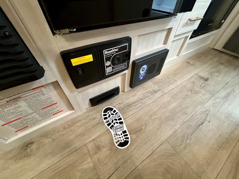With any R-Pod travel trailer by Forest River, you will enjoy affordable luxury at the lowest tow weight in its class! There is a sealed underbelly with forced heat, a curved dual-pane acrylic front window with a bug screen and night shade, plus a large roof mounted solar panel for off-grid capabilities. The 15K A/C unit will keep you comfortable during the summer camping months, and the tankless water heater will provide endless hot showers after hiking, biking, swimming and more! Each model also includes a black glass friction hinge entrance door, roof ladder prep, exterior motion lighting, plus a hot and cold exterior spray port to wash off sand from the beach. Inside, you'll enjoy seamless Surf-X kitchen countertops, blackout roller shades, and a central vacuum system for hassle-free cleaning!