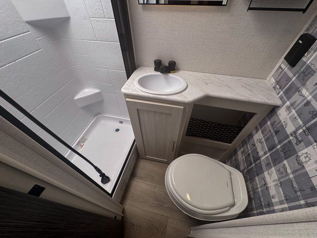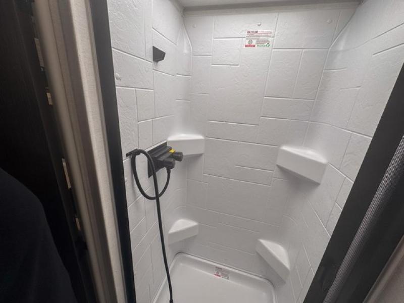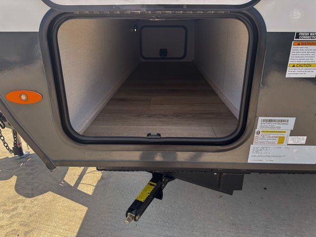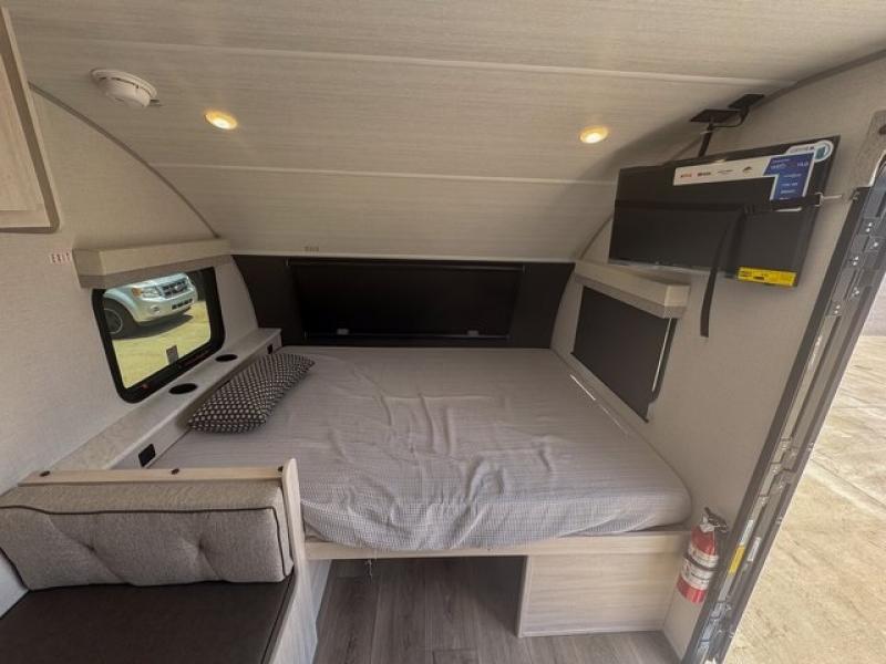 With any R-Pod travel trailer by Forest River, you will enjoy affordable luxury at the lowest tow weight in its class! There is a sealed underbelly with forced heat, a curved dual-pane acrylic front window with a bug screen and night shade, plus a large roof mounted solar panel for off-grid capabilities. The 15K A/C unit will keep you comfortable during the summer camping months, and the tankless water heater will provide endless hot showers after hiking, biking, swimming and more! Each model also includes a black glass friction hinge entrance door, roof ladder prep, exterior motion lighting, plus a hot and cold exterior spray port to wash off sand from the beach. Inside, you'll enjoy seamless Surf-X kitchen countertops, blackout roller shades, and a central vacuum system for hassle-free cleaning!