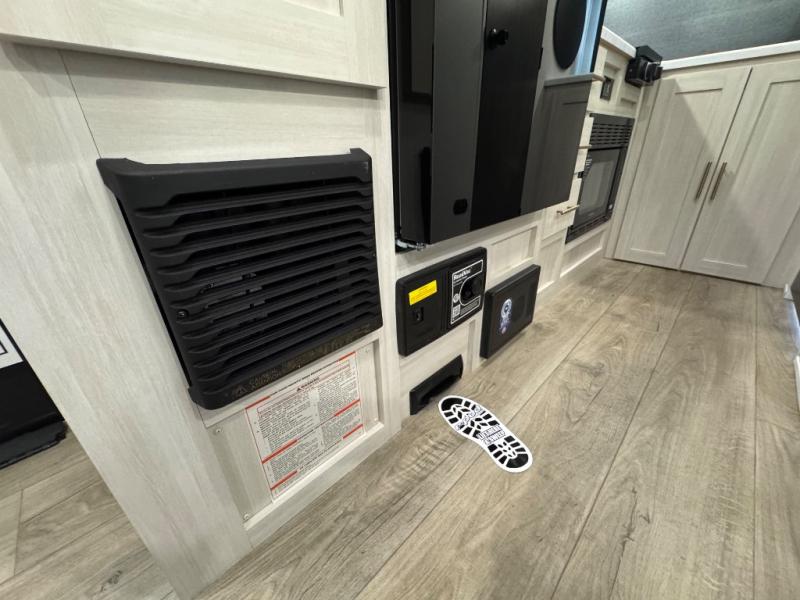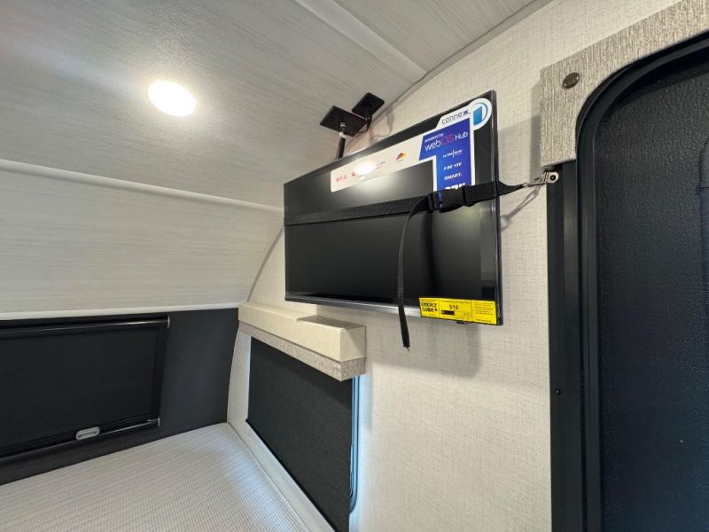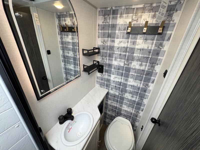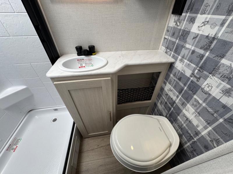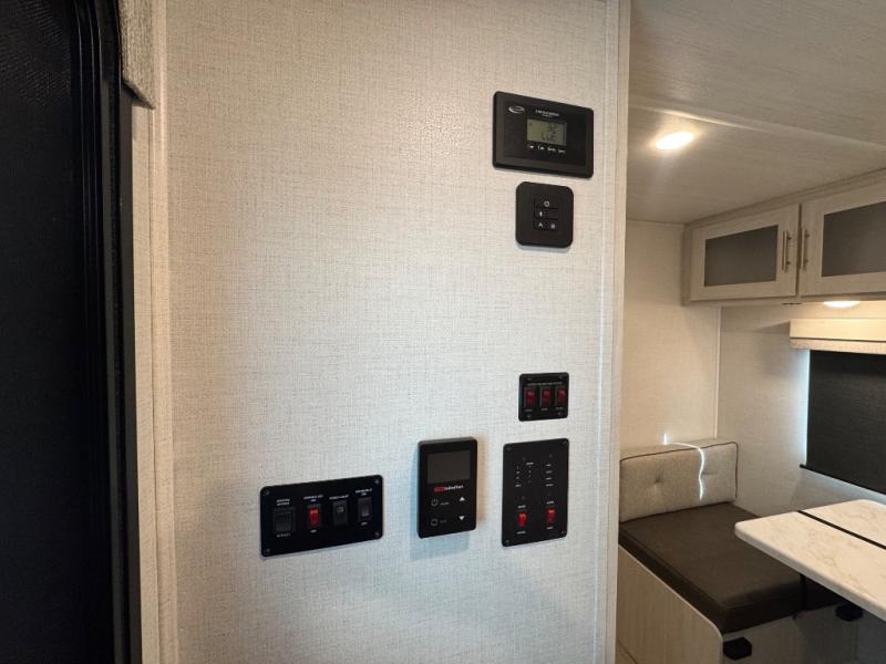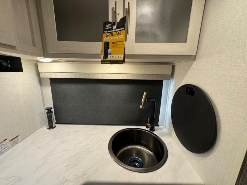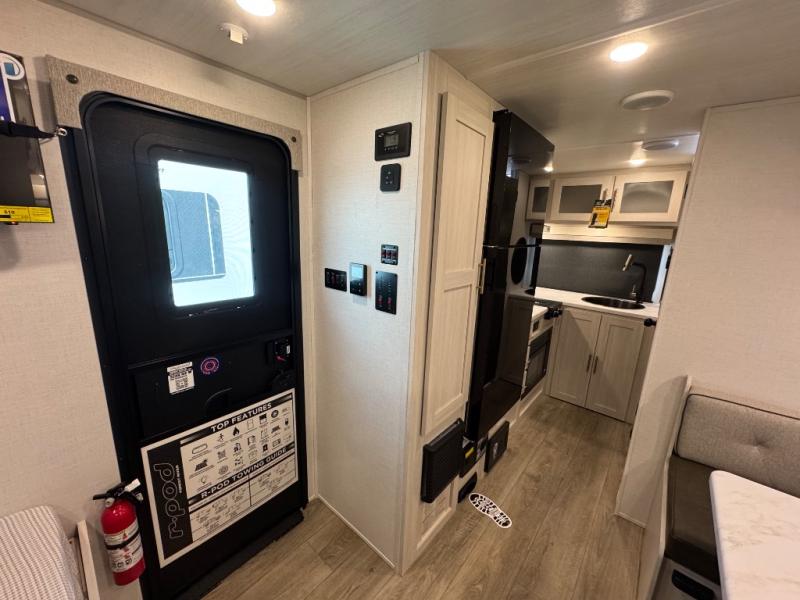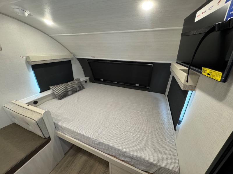 With any R-Pod travel trailer by Forest River, you will enjoy affordable luxury at the lowest tow weight in its class! There is a sealed underbelly with forced heat, a curved dual-pane acrylic front window with a bug screen and night shade, plus a large roof mounted solar panel for off-grid capabilities. The 15K A/C unit will keep you comfortable during the summer camping months, and the tankless water heater will provide endless hot showers after hiking, biking, swimming and more! Each model also includes a black glass friction hinge entrance door, roof ladder prep, exterior motion lighting, plus a hot and cold exterior spray port to wash off sand from the beach. Inside, you'll enjoy seamless Surf-X kitchen countertops, blackout roller shades, and a central vacuum system for hassle-free cleaning!