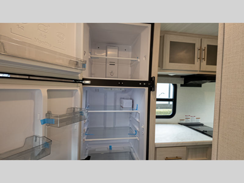 - Outdoor lifestyle: Slide-out griddle under 11' power awning, exterior spray port, solar prep, tankless water heater