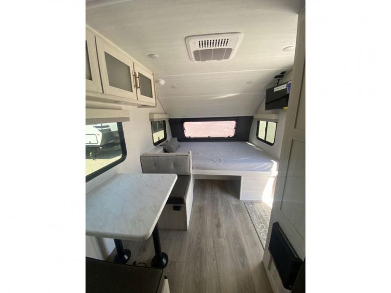 With any R-Pod travel trailer by Forest River, you will enjoy affordable luxury at the lowest tow weight in its class! There is a sealed underbelly with forced heat, a curved dual-pane acrylic front window with a bug screen and night shade, plus a large roof mounted solar panel for off-grid capabilities. The 15K A/C unit will keep you comfortable during the summer camping months, and the tankless water heater will provide endless hot showers after hiking, biking, swimming and more! Each model also includes a black glass friction hinge entrance door, roof ladder prep, exterior motion lighting, plus a hot and cold exterior spray port to wash off sand from the beach. Inside, you'll enjoy seamless Surf-X kitchen countertops, blackout roller shades, and a central vacuum system for hassle-free cleaning!