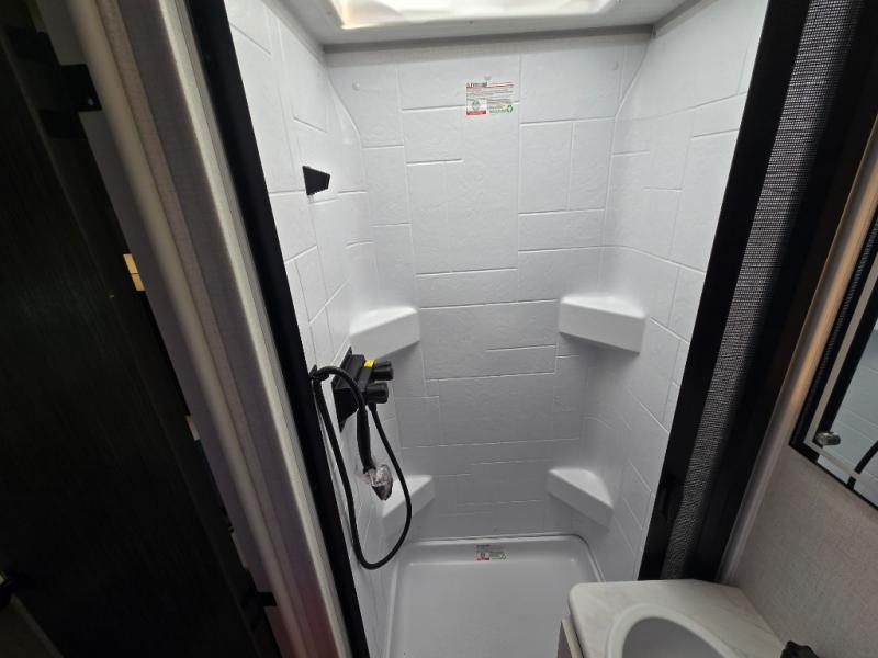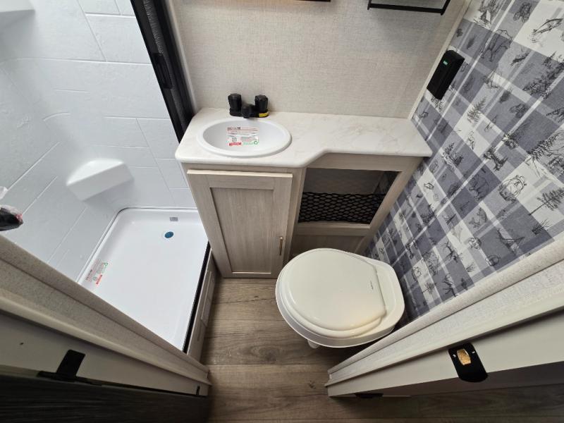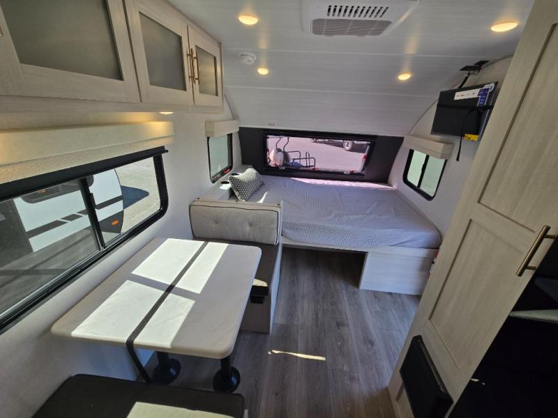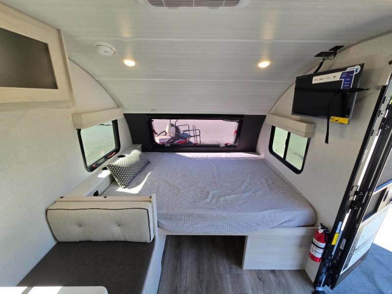 With any R-Pod travel trailer by Forest River, you will enjoy affordable luxury at the lowest tow weight in its class! There is a sealed underbelly with forced heat, a curved dual-pane acrylic front window with a bug screen and night shade, plus a large roof mounted solar panel for off-grid capabilities. The 15K A/C unit will keep you comfortable during the summer camping months, and the tankless water heater will provide endless hot showers after hiking, biking, swimming and more! Each model also includes a black glass friction hinge entrance door, roof ladder prep, exterior motion lighting, plus a hot and cold exterior spray port to wash off sand from the beach. Inside, you'll enjoy seamless Surf-X kitchen countertops, blackout roller shades, and a central vacuum system for hassle-free cleaning!