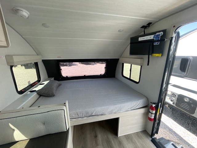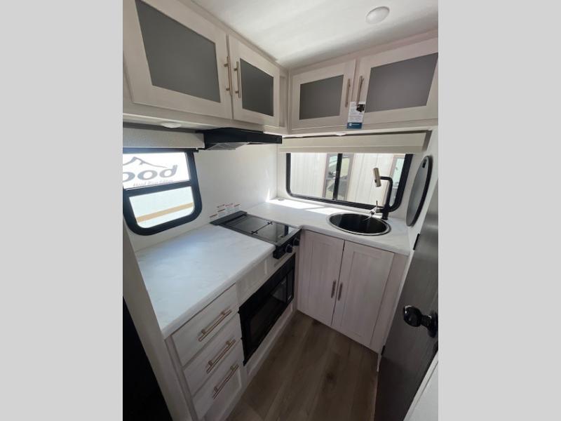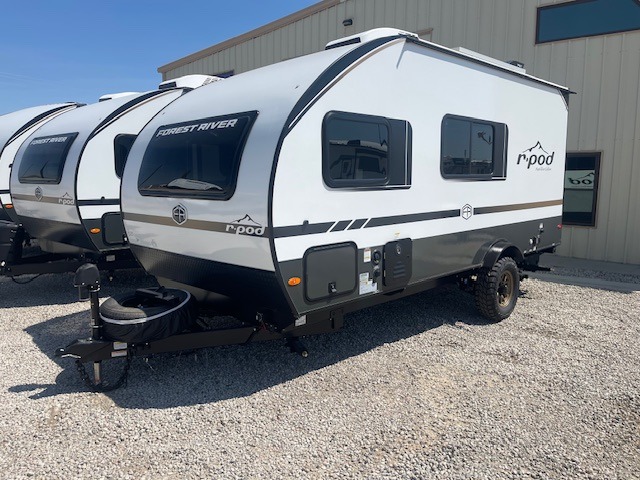 With any R-Pod travel trailer by Forest River, you will enjoy affordable luxury at the lowest tow weight in its class! There is a sealed underbelly with forced heat, a curved dual-pane acrylic front window with a bug screen and night shade, plus a large roof mounted solar panel for off-grid capabilities. The 15K A/C unit will keep you comfortable during the summer camping months, and the tankless water heater will provide endless hot showers after hiking, biking, swimming and more! Each model also includes a black glass friction hinge entrance door, roof ladder prep, exterior motion lighting, plus a hot and cold exterior spray port to wash off sand from the beach. Inside, you'll enjoy seamless Surf-X kitchen countertops, blackout roller shades, and a central vacuum system for hassle-free cleaning!