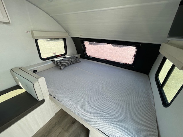 With any R-Pod travel trailer by Forest River, you will enjoy affordable luxury at the lowest tow weight in its class! There is a sealed underbelly with forced heat, a curved dual-pane acrylic front window with a bug screen and night shade, plus a large roof mounted solar panel for off-grid capabilities. The 15K A/C unit will keep you comfortable during the summer camping months, and the tankless water heater will provide endless hot showers after hiking, biking, swimming and more! Each model also includes a black glass friction hinge entrance door, roof ladder prep, exterior motion lighting, plus a hot and cold exterior spray port to wash off sand from the beach. Inside, you'll enjoy seamless Surf-X kitchen countertops, blackout roller shades, and a central vacuum system for hassle-free cleaning!