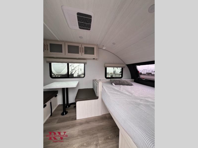 With any R-Pod travel trailer by Forest River, you will enjoy affordable luxury at the lowest tow weight in its class! There is a sealed underbelly with forced heat, a curved dual-pane acrylic front window with a bug screen and night shade, plus a large roof mounted solar panel for off-grid capabilities. The 15K A/C unit will keep you comfortable during the summer camping months, and the tankless water heater will provide endless hot showers after hiking, biking, swimming and more! Each model also includes a black glass friction hinge entrance door, roof ladder prep, exterior motion lighting, plus a hot and cold exterior spray port to wash off sand from the beach. Inside, you'll enjoy seamless Surf-X kitchen countertops, blackout roller shades, and a central vacuum system for hassle-free cleaning!