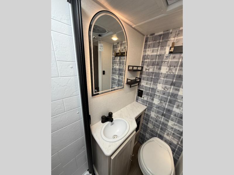 With any R-Pod travel trailer by Forest River, you will enjoy affordable luxury at the lowest tow weight in its class! There is a sealed underbelly with forced heat, a curved dual-pane acrylic front window with a bug screen and night shade, plus a large roof mounted solar panel for off-grid capabilities. The 15K A/C unit will keep you comfortable during the summer camping months, and the tankless water heater will provide endless hot showers after hiking, biking, swimming and more! Each model also includes a black glass friction hinge entrance door, roof ladder prep, exterior motion lighting, plus a hot and cold exterior spray port to wash off sand from the beach. Inside, you'll enjoy seamless Surf-X kitchen countertops, blackout roller shades, and a central vacuum system for hassle-free cleaning!