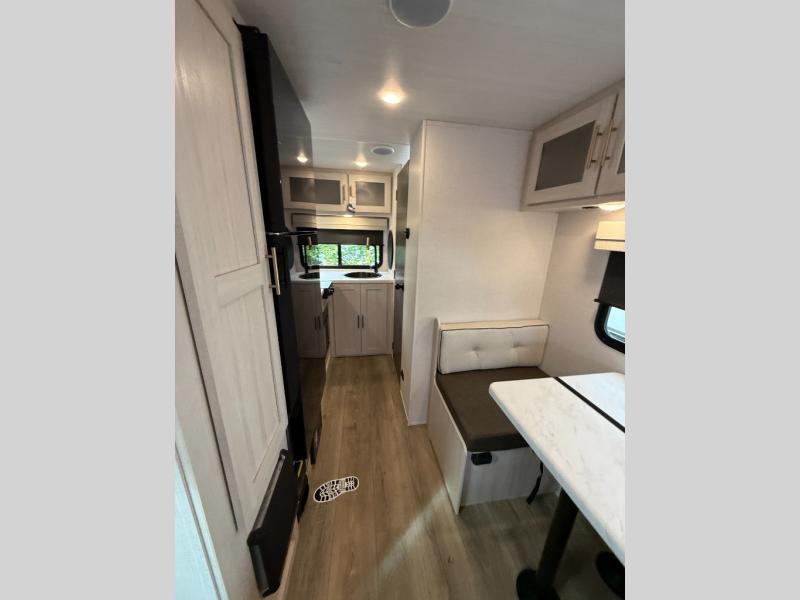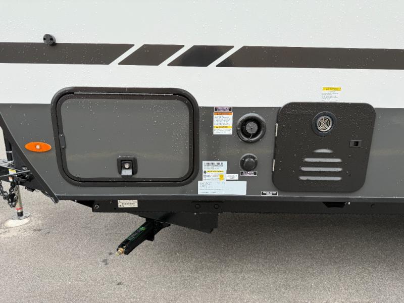 With any R-Pod travel trailer by Forest River, you will enjoy affordable luxury at the lowest tow weight in its class! There is a sealed underbelly with forced heat, a curved dual-pane acrylic front window with a bug screen and night shade, plus a large roof mounted solar panel for off-grid capabilities. The 15K A/C unit will keep you comfortable during the summer camping months, and the tankless water heater will provide endless hot showers after hiking, biking, swimming and more! Each model also includes a black glass friction hinge entrance door, roof ladder prep, exterior motion lighting, plus a hot and cold exterior spray port to wash off sand from the beach. Inside, you'll enjoy seamless Surf-X kitchen countertops, blackout roller shades, and a central vacuum system for hassle-free cleaning!