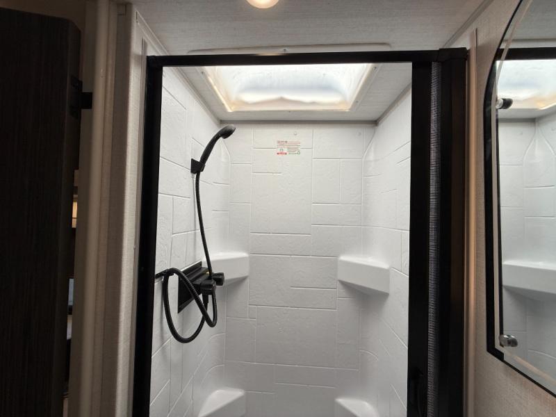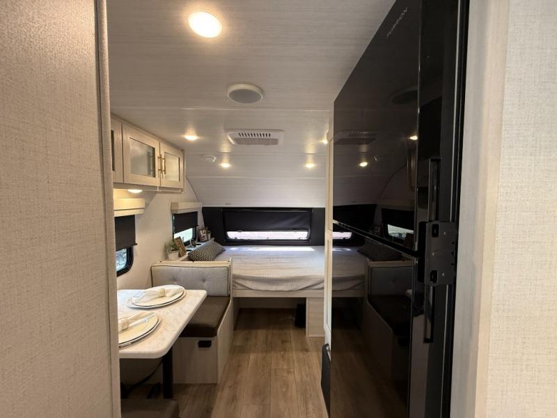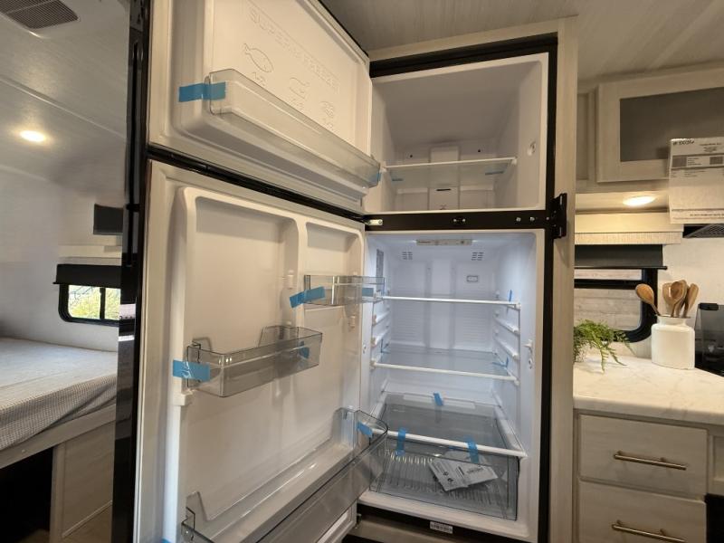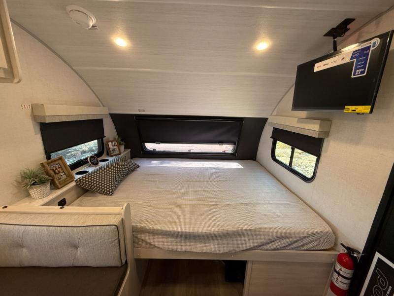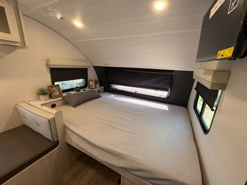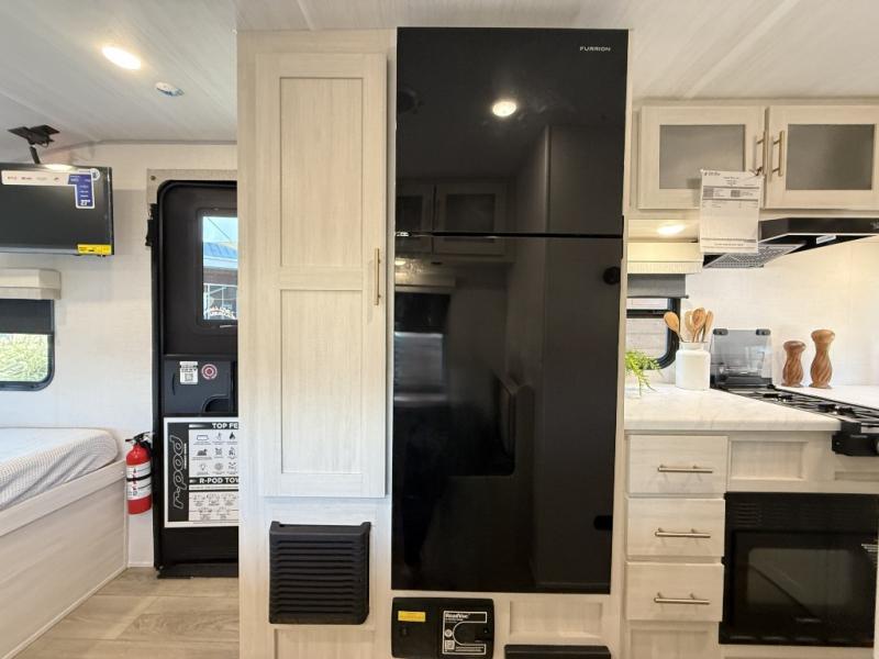 With any R-Pod travel trailer by Forest River, you will enjoy affordable luxury at the lowest tow weight in its class! There is a sealed underbelly with forced heat, a curved dual-pane acrylic front window with a bug screen and night shade, plus a large roof mounted solar panel for off-grid capabilities. The 15K A/C unit will keep you comfortable during the summer camping months, and the tankless water heater will provide endless hot showers after hiking, biking, swimming and more! Each model also includes a black glass friction hinge entrance door, roof ladder prep, exterior motion lighting, plus a hot and cold exterior spray port to wash off sand from the beach. Inside, you'll enjoy seamless Surf-X kitchen countertops, blackout roller shades, and a central vacuum system for hassle-free cleaning!