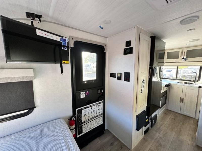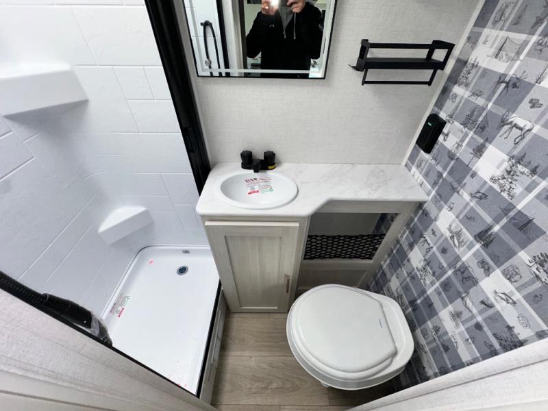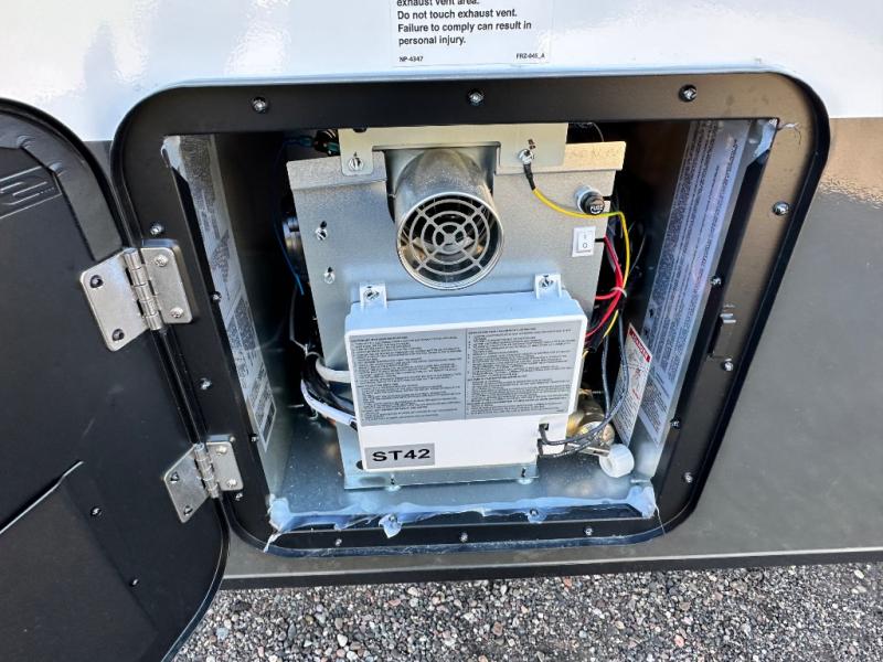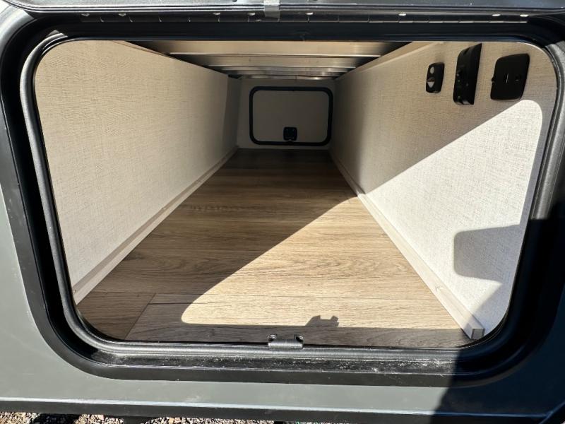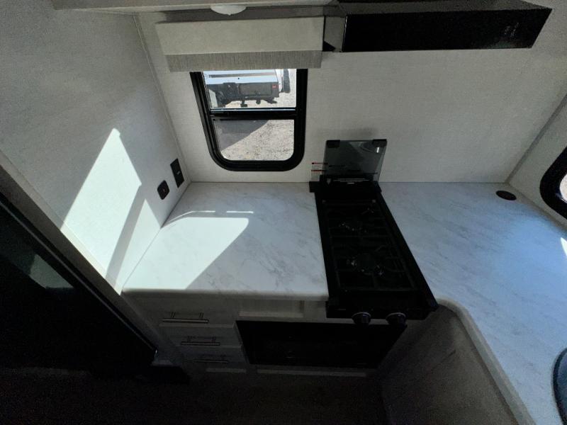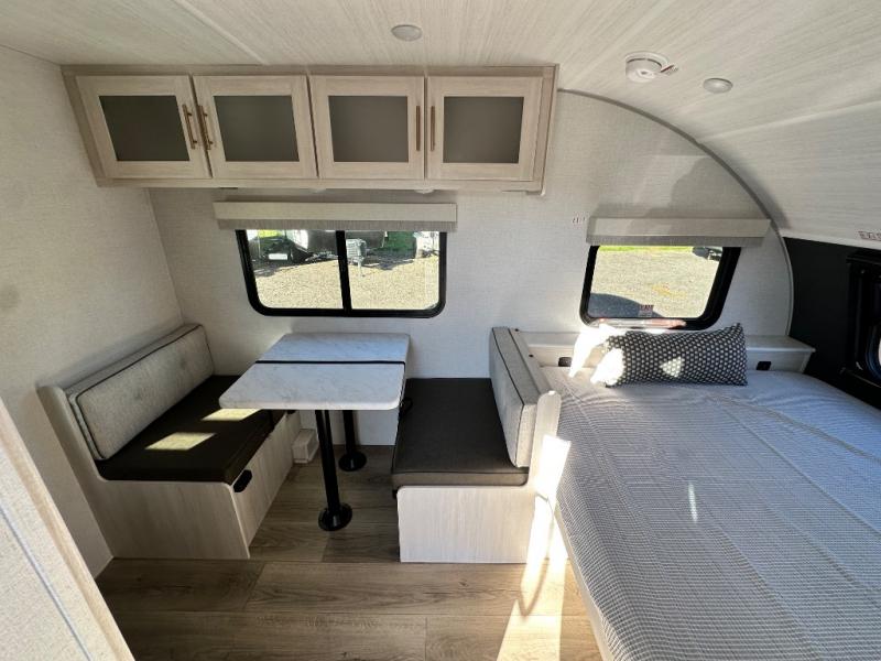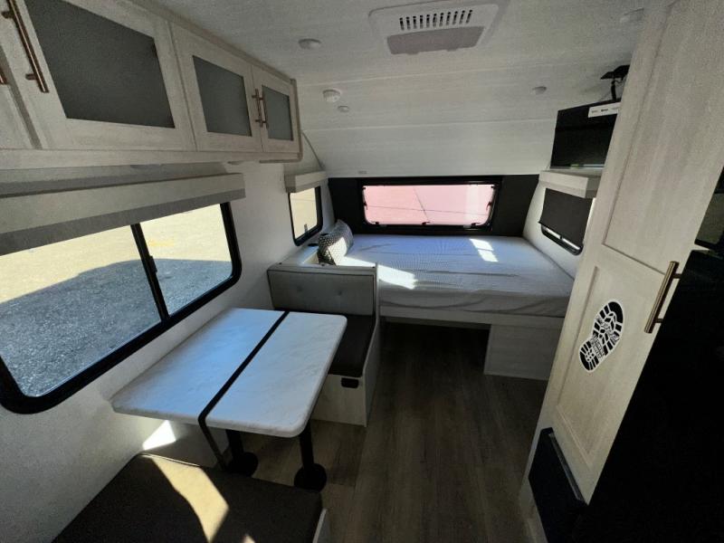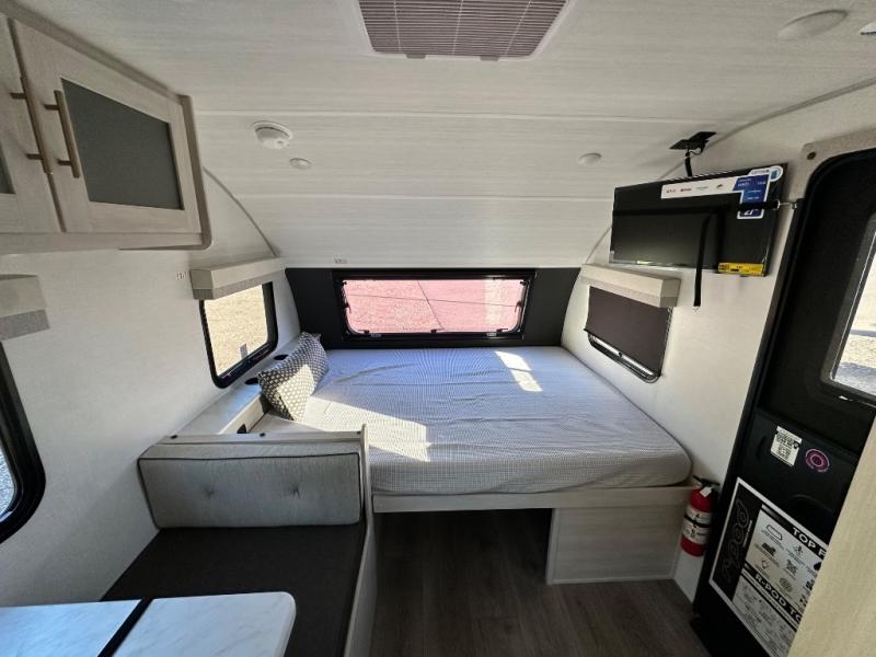 With any R-Pod travel trailer by Forest River, you will enjoy affordable luxury at the lowest tow weight in its class! There is a sealed underbelly with forced heat, a curved dual-pane acrylic front window with a bug screen and night shade, plus a large roof mounted solar panel for off-grid capabilities. The 15K A/C unit will keep you comfortable during the summer camping months, and the tankless water heater will provide endless hot showers after hiking, biking, swimming and more! Each model also includes a black glass friction hinge entrance door, roof ladder prep, exterior motion lighting, plus a hot and cold exterior spray port to wash off sand from the beach. Inside, you'll enjoy seamless Surf-X kitchen countertops, blackout roller shades, and a central vacuum system for hassle-free cleaning!