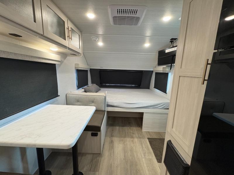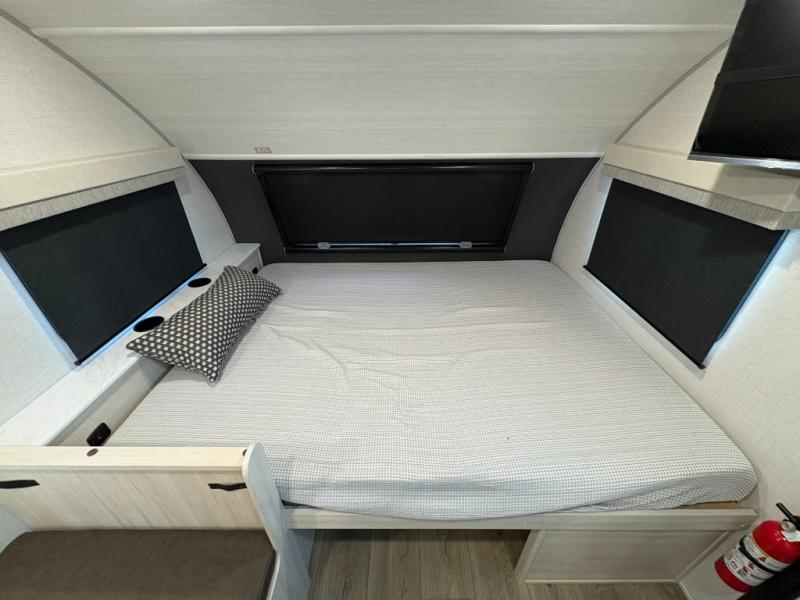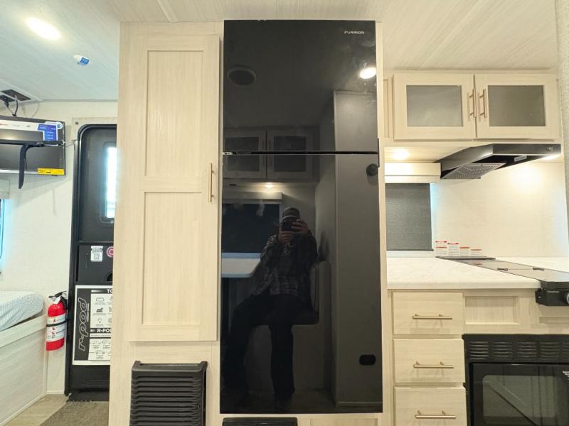 With any R-Pod travel trailer by Forest River, you will enjoy affordable luxury at the lowest tow weight in its class! There is a sealed underbelly with forced heat, a curved dual-pane acrylic front window with a bug screen and night shade, plus a large roof mounted solar panel for off-grid capabilities. The 15K A/C unit will keep you comfortable during the summer camping months, and the tankless water heater will provide endless hot showers after hiking, biking, swimming and more! Each model also includes a black glass friction hinge entrance door, roof ladder prep, exterior motion lighting, plus a hot and cold exterior spray port to wash off sand from the beach. Inside, you'll enjoy seamless Surf-X kitchen countertops, blackout roller shades, and a central vacuum system for hassle-free cleaning!