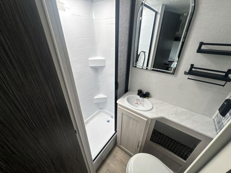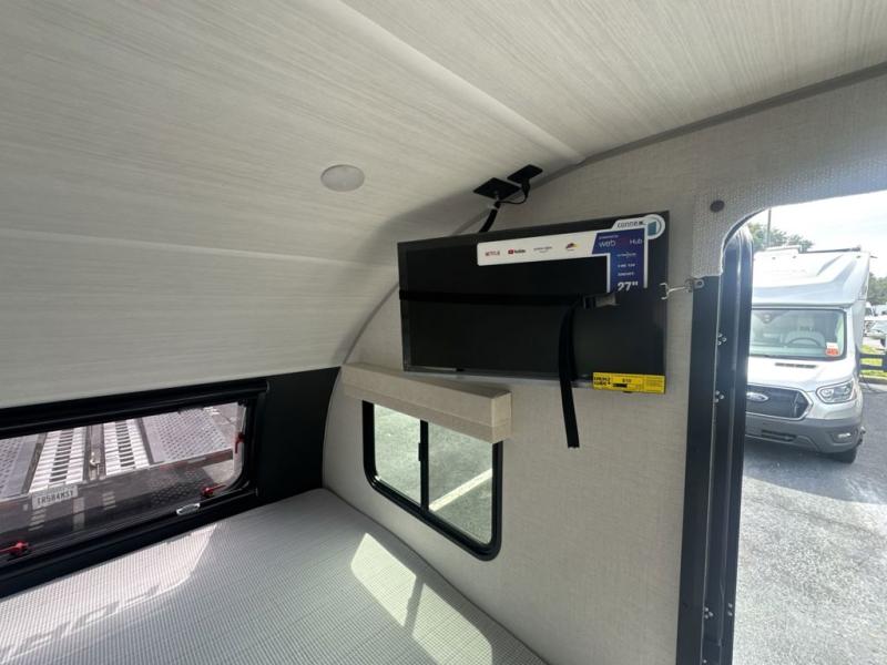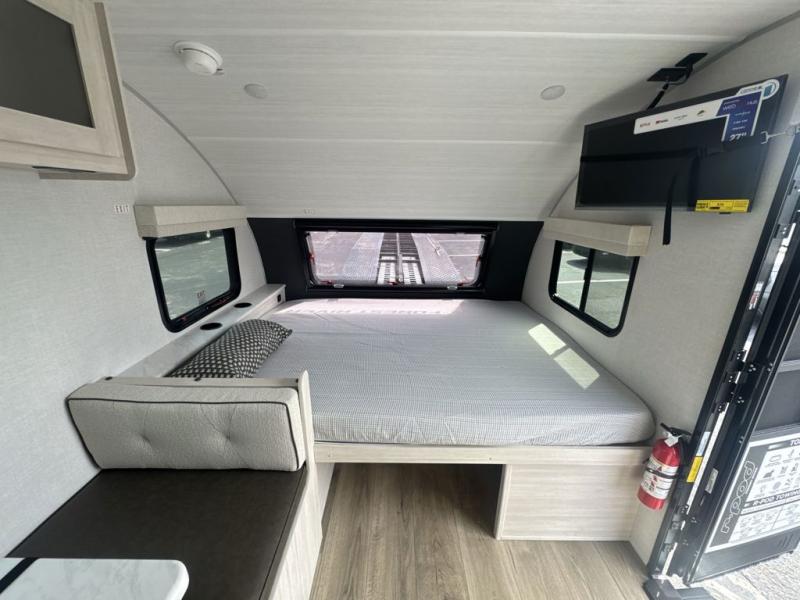 With any R-Pod travel trailer by Forest River, you will enjoy affordable luxury at the lowest tow weight in its class! There is a sealed underbelly with forced heat, a curved dual-pane acrylic front window with a bug screen and night shade, plus a large roof mounted solar panel for off-grid capabilities. The 15K A/C unit will keep you comfortable during the summer camping months, and the tankless water heater will provide endless hot showers after hiking, biking, swimming and more! Each model also includes a black glass friction hinge entrance door, roof ladder prep, exterior motion lighting, plus a hot and cold exterior spray port to wash off sand from the beach. Inside, you'll enjoy seamless Surf-X kitchen countertops, blackout roller shades, and a central vacuum system for hassle-free cleaning!
