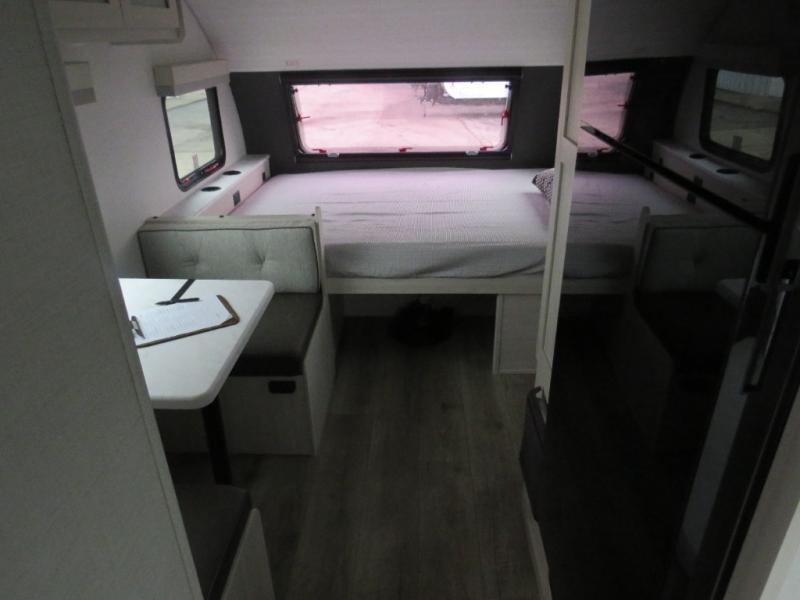 With any R-Pod travel trailer by Forest River, you will enjoy affordable luxury at the lowest tow weight in its class! There is a sealed underbelly with forced heat, a curved dual-pane acrylic front window with a bug screen and night shade, plus a large roof mounted solar panel for off-grid capabilities. The 15K A/C unit will keep you comfortable during the summer camping months, and the tankless water heater will provide endless hot showers after hiking, biking, swimming and more! Each model also includes a black glass friction hinge entrance door, roof ladder prep, exterior motion lighting, plus a hot and cold exterior spray port to wash off sand from the beach. Inside, you'll enjoy seamless Surf-X kitchen countertops, blackout roller shades, and a central vacuum system for hassle-free cleaning!