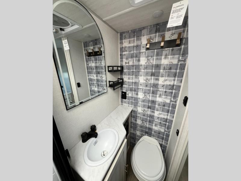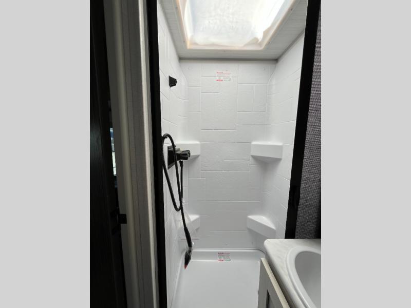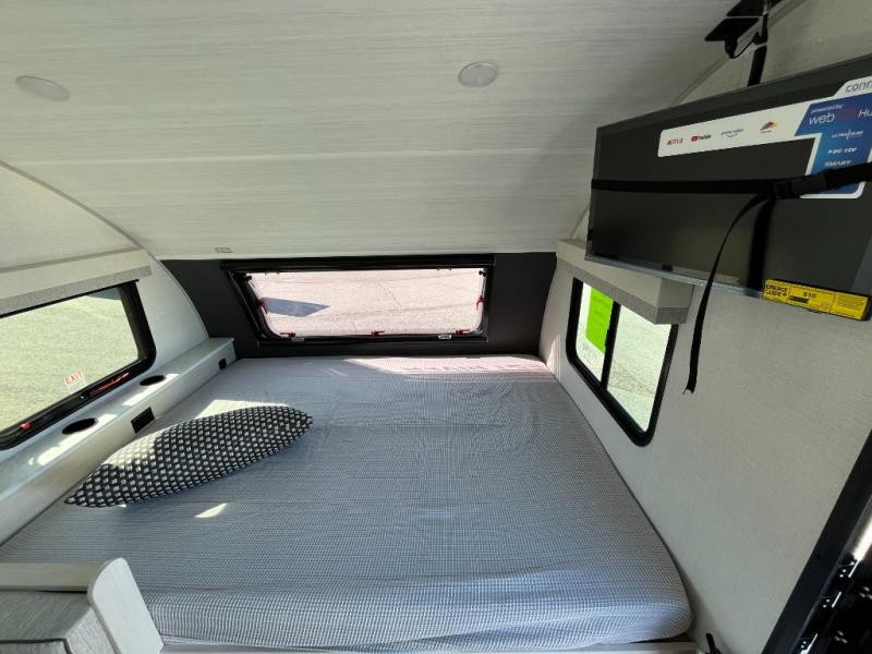 With any R-Pod travel trailer by Forest River, you will enjoy affordable luxury at the lowest tow weight in its class! There is a sealed underbelly with forced heat, a curved dual-pane acrylic front window with a bug screen and night shade, plus a large roof mounted solar panel for off-grid capabilities. The 15K A/C unit will keep you comfortable during the summer camping months, and the tankless water heater will provide endless hot showers after hiking, biking, swimming and more! Each model also includes a black glass friction hinge entrance door, roof ladder prep, exterior motion lighting, plus a hot and cold exterior spray port to wash off sand from the beach. Inside, you'll enjoy seamless Surf-X kitchen countertops, blackout roller shades, and a central vacuum system for hassle-free cleaning!