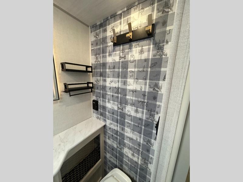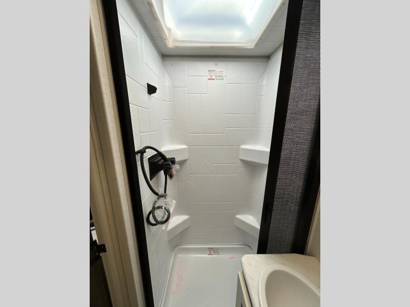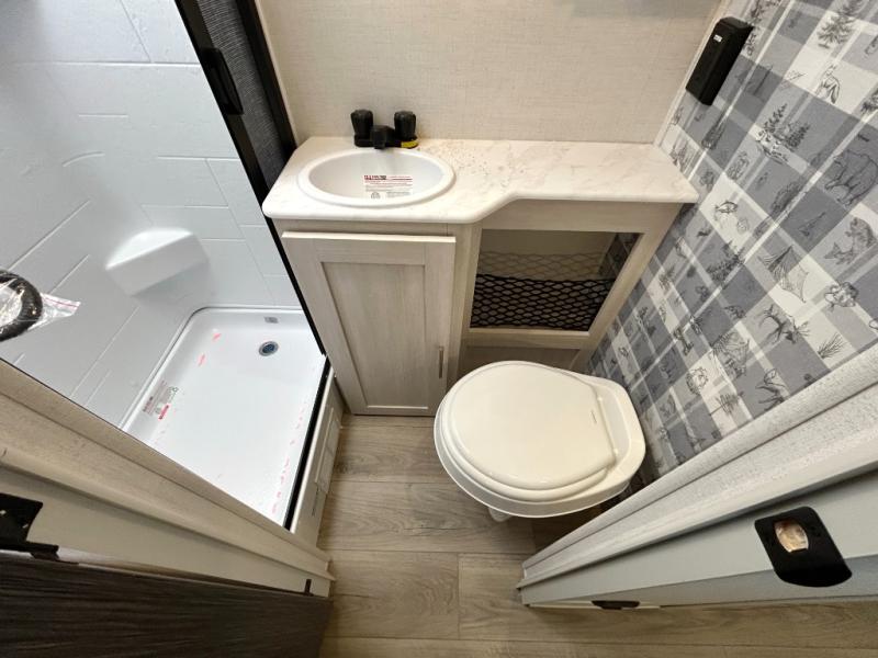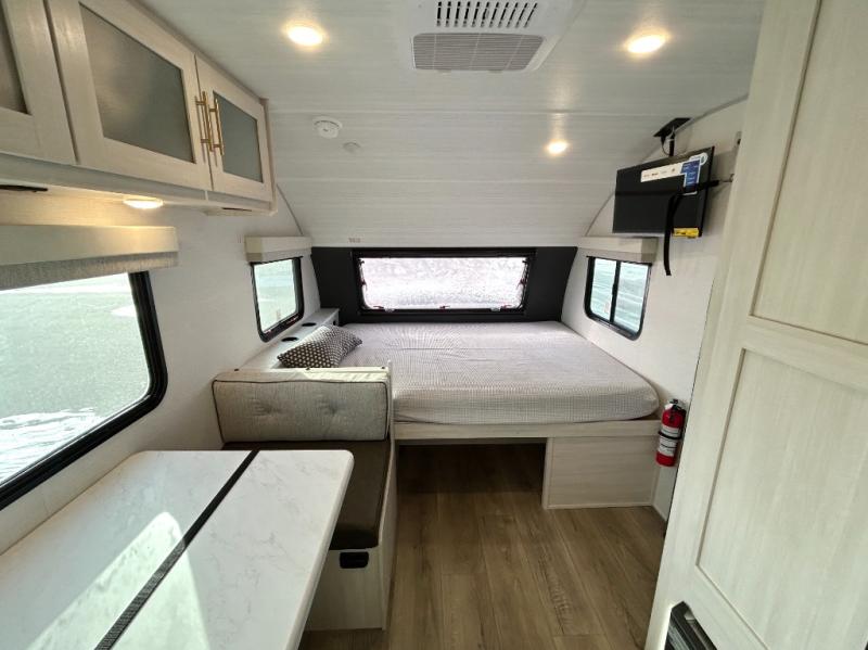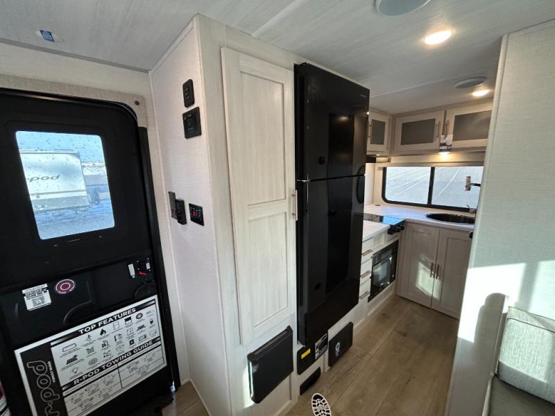 With any R-Pod travel trailer by Forest River, you will enjoy affordable luxury at the lowest tow weight in its class! There is a sealed underbelly with forced heat, a curved dual-pane acrylic front window with a bug screen and night shade, plus a large roof mounted solar panel for off-grid capabilities. The 15K A/C unit will keep you comfortable during the summer camping months, and the tankless water heater will provide endless hot showers after hiking, biking, swimming and more! Each model also includes a black glass friction hinge entrance door, roof ladder prep, exterior motion lighting, plus a hot and cold exterior spray port to wash off sand from the beach. Inside, you'll enjoy seamless Surf-X kitchen countertops, blackout roller shades, and a central vacuum system for hassle-free cleaning!