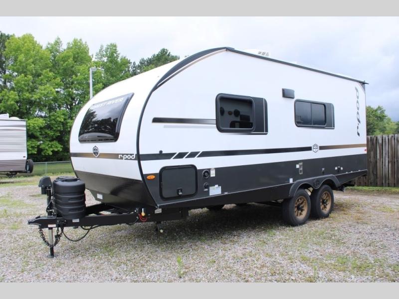 With any R-Pod travel trailer by Forest River, you will enjoy affordable luxury at the lowest tow weight in its class! There is a sealed underbelly with forced heat, a curved dual-pane acrylic front window with a bug screen and night shade, plus a large roof mounted solar panel for off-grid capabilities. The 15K A/C unit will keep you comfortable during the summer camping months, and the tankless water heater will provide endless hot showers after hiking, biking, swimming and more! Each model also includes a black glass friction hinge entrance door, roof ladder prep, exterior motion lighting, plus a hot and cold exterior spray port to wash off sand from the beach. Inside, you'll enjoy seamless Surf-X kitchen countertops, blackout roller shades, and a central vacuum system for hassle-free cleaning!