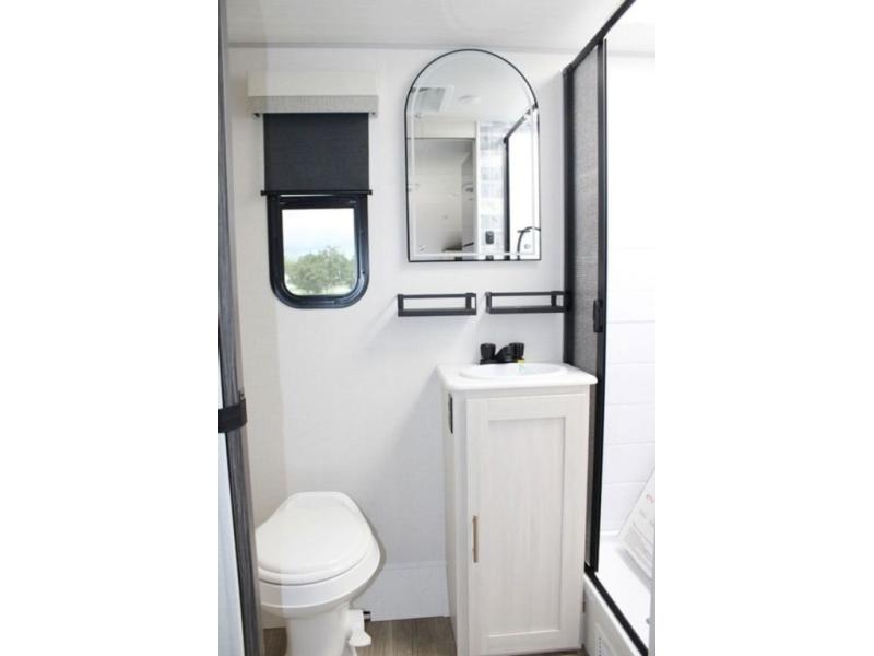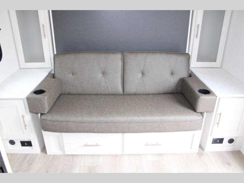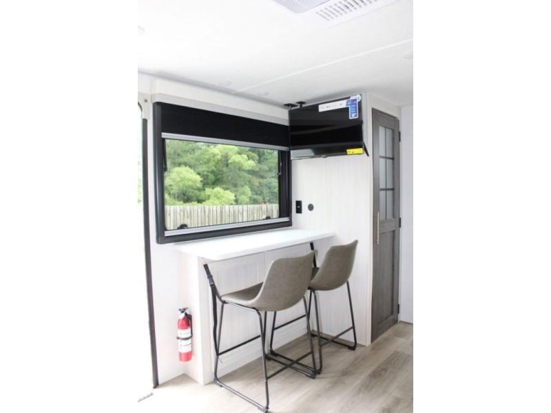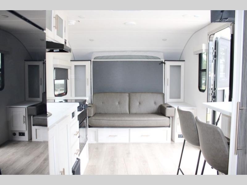 This versatile travel trailer is perfect for two adventure-seeking campers! You will love having a queen-size Murphy bed up front since you can fold it away during the day and relax on the sofa. There are also dual wardrobes to keep your clothes out of the way plus dual end tables to set your coffee or book on. A full kitchen includes an airy fryer microwave, 12V black glass refrigerator, and a counter with two chairs where you can dine each day. You will also love the flip-up window above the table, along with a 12V TV to keep you entertained, plus a pantry to keep food stocked. Head to the full rear bath that includes a large linen closet, a shower, and a night light for added convenience. The exterior is just as accommodating with its large roof mounted solar panel, rear accessory hitch, slam latch cargo doors, and more!