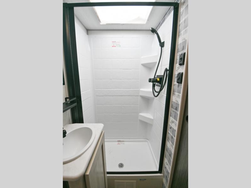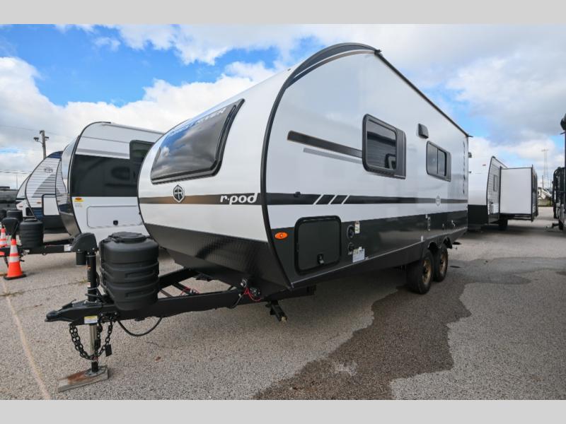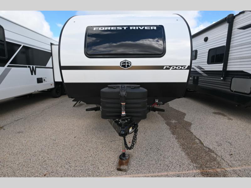With any R-Pod travel trailer by Forest River, you will enjoy affordable luxury at the lowest tow weight in its class! There is a sealed underbelly with forced heat, a curved dual-pane acrylic front window with a bug screen and night shade, plus a large roof mounted solar panel for off-grid capabilities. The 15K A/C unit will keep you comfortable during the summer camping months, and the tankless water heater will provide endless hot showers after hiking, biking, swimming and more! Each model also includes a black glass friction hinge entrance door, roof ladder prep, exterior motion lighting, plus a hot and cold exterior spray port to wash off sand from the beach. Inside, you'll enjoy seamless Surf-X kitchen countertops, blackout roller shades, and a central vacuum system for hassle-free cleaning!