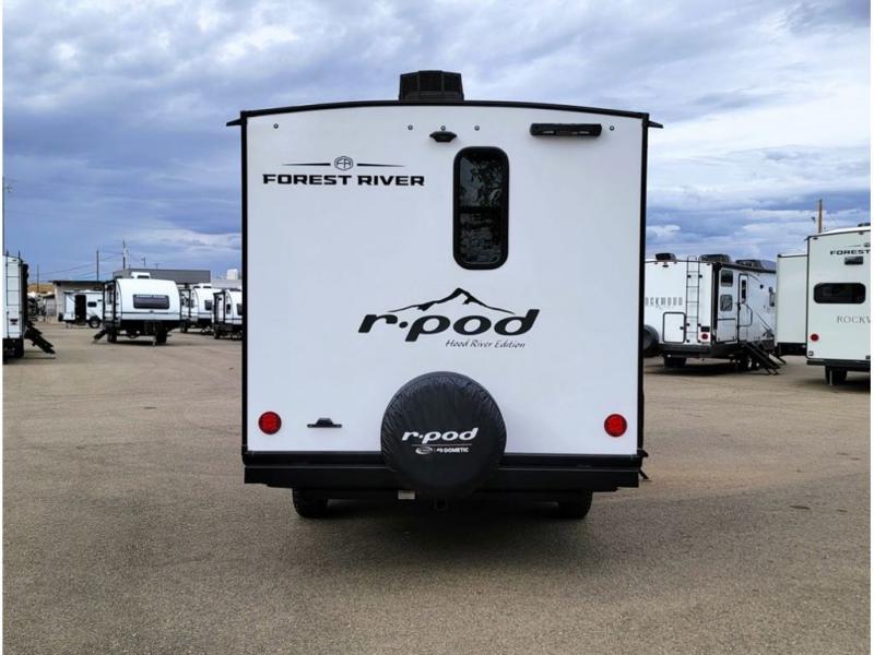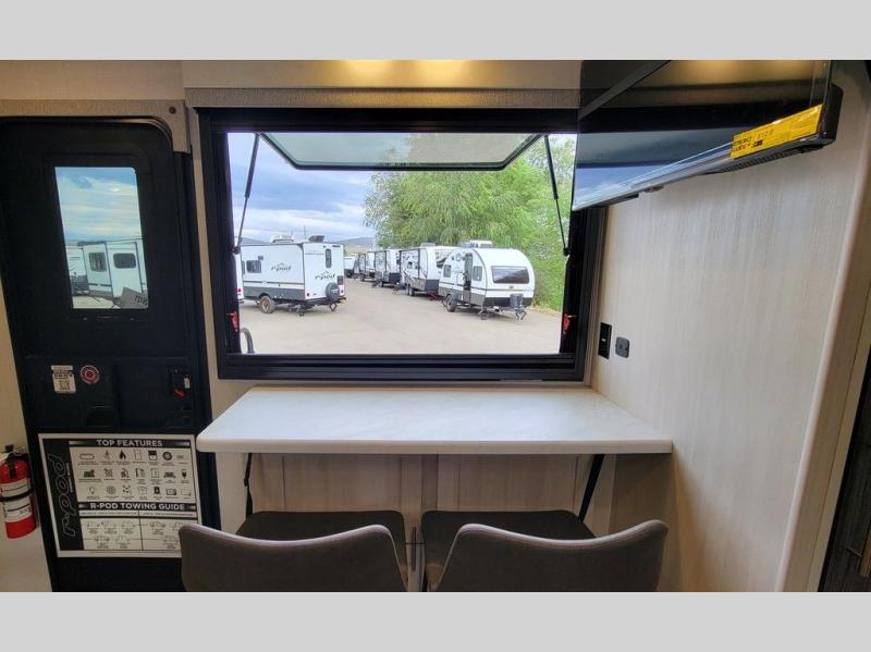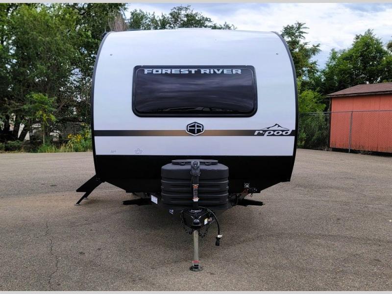 With any R-Pod travel trailer by Forest River, you will enjoy affordable luxury at the lowest tow weight in its class! There is a sealed underbelly with forced heat, a curved dual-pane acrylic front window with a bug screen and night shade, plus a large roof mounted solar panel for off-grid capabilities. The 15K A/C unit will keep you comfortable during the summer camping months, and the tankless water heater will provide endless hot showers after hiking, biking, swimming and more! Each model also includes a black glass friction hinge entrance door, roof ladder prep, exterior motion lighting, plus a hot and cold exterior spray port to wash off sand from the beach. Inside, you'll enjoy seamless Surf-X kitchen countertops, blackout roller shades, and a central vacuum system for hassle-free cleaning!