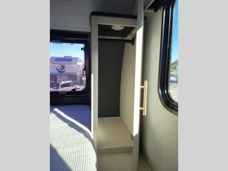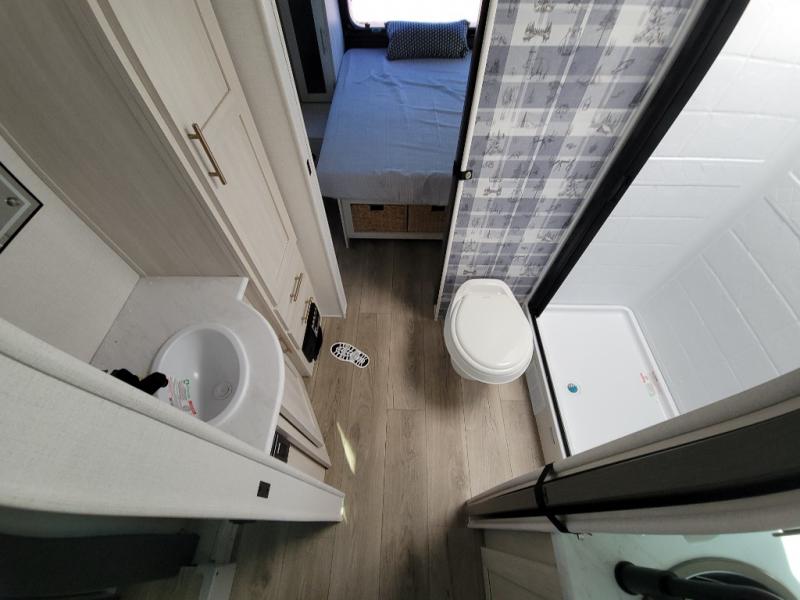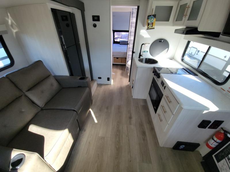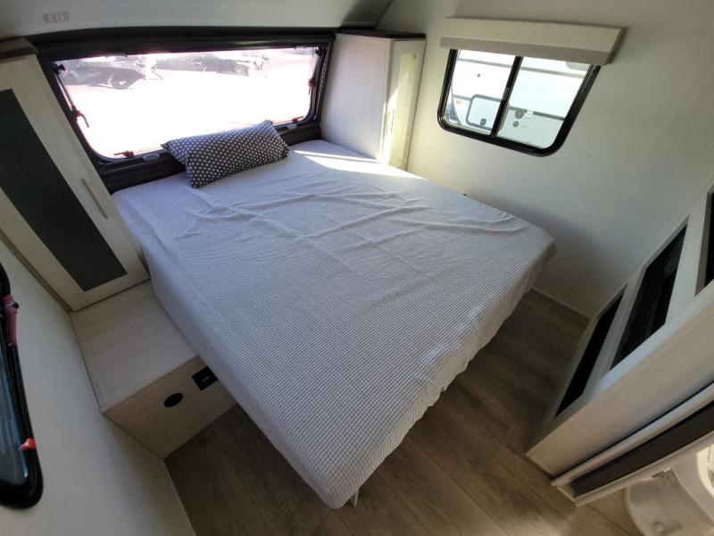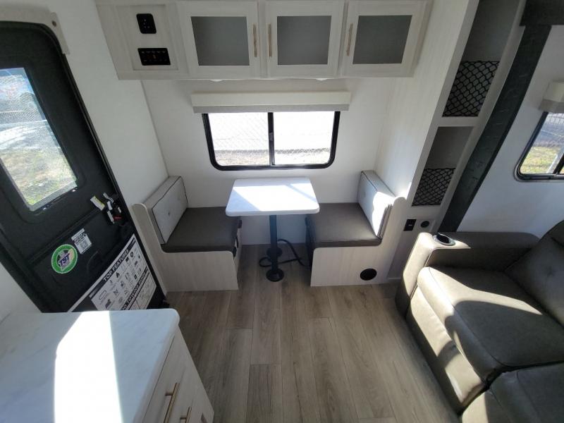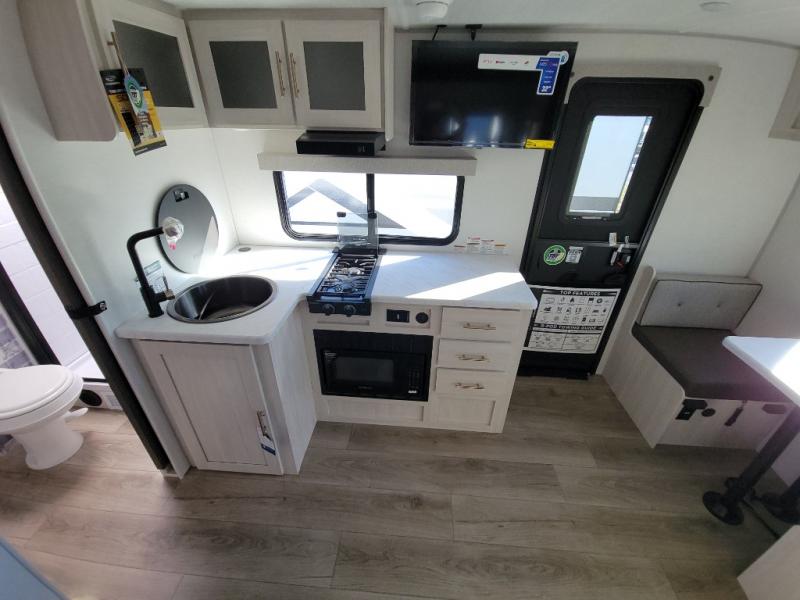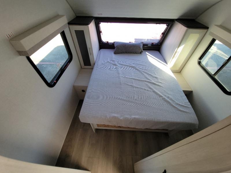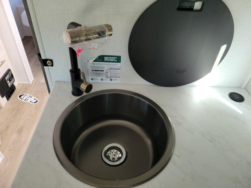 With any R-Pod travel trailer by Forest River, you will enjoy affordable luxury at the lowest tow weight in its class! There is a sealed underbelly with forced heat, a curved dual-pane acrylic front window with a bug screen and night shade, plus a large roof mounted solar panel for off-grid capabilities. The 15K A/C unit will keep you comfortable during the summer camping months, and the tankless water heater will provide endless hot showers after hiking, biking, swimming and more! Each model also includes a black glass friction hinge entrance door, roof ladder prep, exterior motion lighting, plus a hot and cold exterior spray port to wash off sand from the beach. Inside, you'll enjoy seamless Surf-X kitchen countertops, blackout roller shades, and a central vacuum system for hassle-free cleaning!