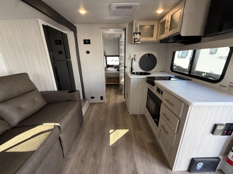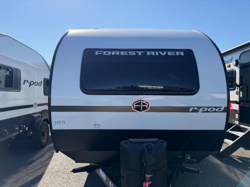 With any R-Pod travel trailer by Forest River, you will enjoy affordable luxury at the lowest tow weight in its class! There is a sealed underbelly with forced heat, a curved dual-pane acrylic front window with a bug screen and night shade, plus a large roof mounted solar panel for off-grid capabilities. The 15K A/C unit will keep you comfortable during the summer camping months, and the tankless water heater will provide endless hot showers after hiking, biking, swimming and more! Each model also includes a black glass friction hinge entrance door, roof ladder prep, exterior motion lighting, plus a hot and cold exterior spray port to wash off sand from the beach. Inside, you'll enjoy seamless Surf-X kitchen countertops, blackout roller shades, and a central vacuum system for hassle-free cleaning!