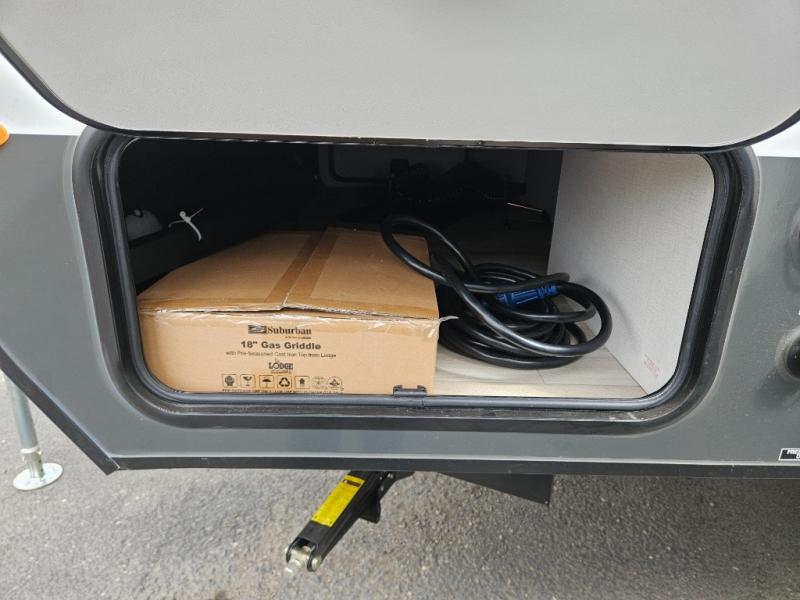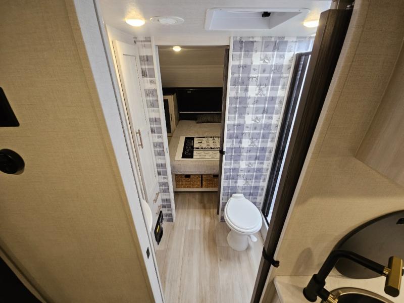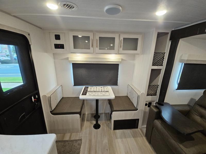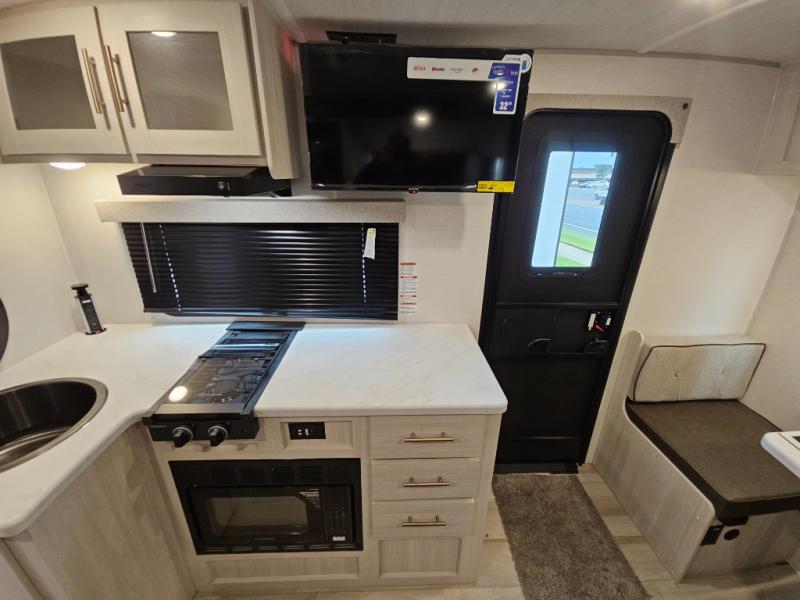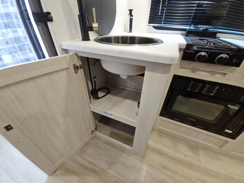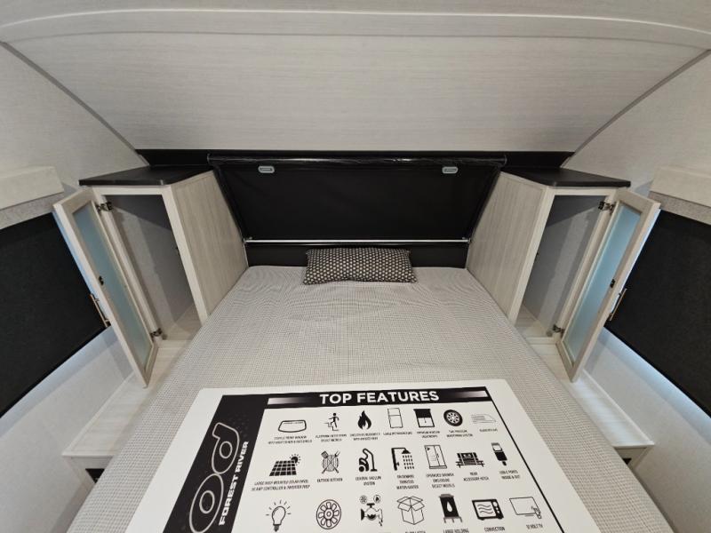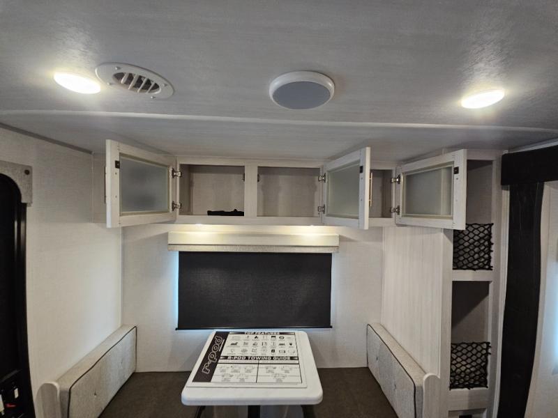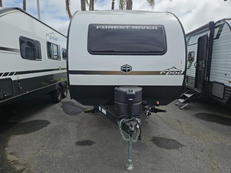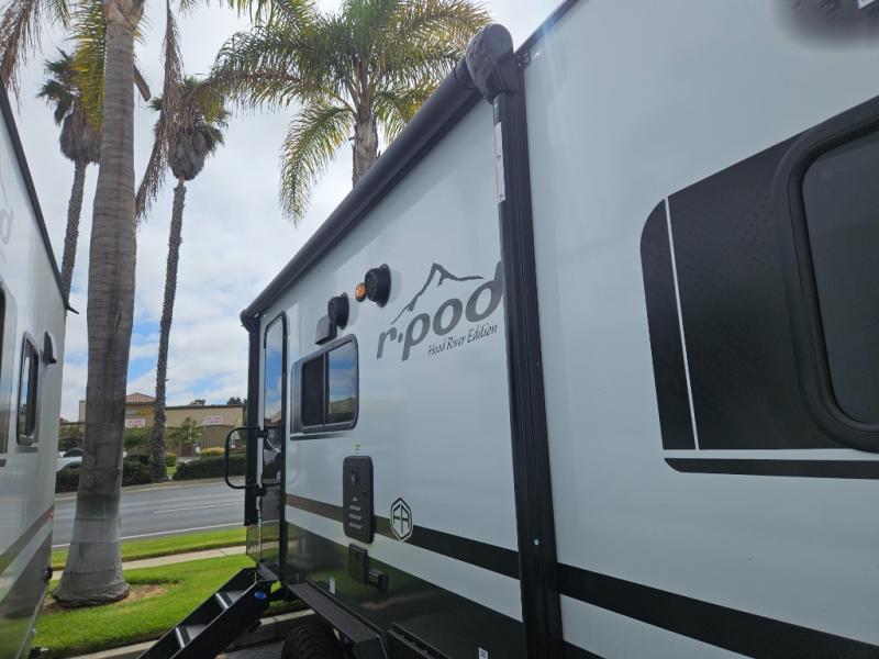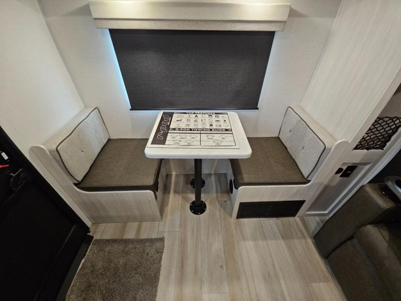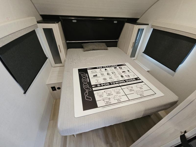 With any R-Pod travel trailer by Forest River, you will enjoy affordable luxury at the lowest tow weight in its class! There is a sealed underbelly with forced heat, a curved dual-pane acrylic front window with a bug screen and night shade, plus a large roof mounted solar panel for off-grid capabilities. The 15K A/C unit will keep you comfortable during the summer camping months, and the tankless water heater will provide endless hot showers after hiking, biking, swimming and more! Each model also includes a black glass friction hinge entrance door, roof ladder prep, exterior motion lighting, plus a hot and cold exterior spray port to wash off sand from the beach. Inside, you'll enjoy seamless Surf-X kitchen countertops, blackout roller shades, and a central vacuum system for hassle-free cleaning!