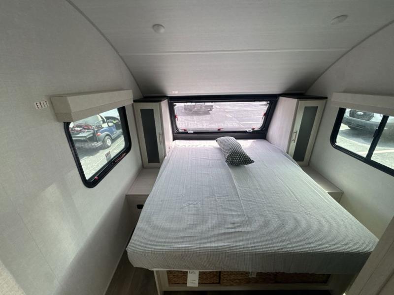 With any R-Pod travel trailer by Forest River, you will enjoy affordable luxury at the lowest tow weight in its class! There is a sealed underbelly with forced heat, a curved dual-pane acrylic front window with a bug screen and night shade, plus a large roof mounted solar panel for off-grid capabilities. The 15K A/C unit will keep you comfortable during the summer camping months, and the tankless water heater will provide endless hot showers after hiking, biking, swimming and more! Each model also includes a black glass friction hinge entrance door, roof ladder prep, exterior motion lighting, plus a hot and cold exterior spray port to wash off sand from the beach. Inside, you'll enjoy seamless Surf-X kitchen countertops, blackout roller shades, and a central vacuum system for hassle-free cleaning!