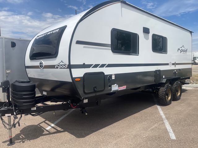 With any R-Pod travel trailer by Forest River, you will enjoy affordable luxury at the lowest tow weight in its class! There is a sealed underbelly with forced heat, a curved dual-pane acrylic front window with a bug screen and night shade, plus a large roof mounted solar panel for off-grid capabilities. The 15K A/C unit will keep you comfortable during the summer camping months, and the tankless water heater will provide endless hot showers after hiking, biking, swimming and more! Each model also includes a black glass friction hinge entrance door, roof ladder prep, exterior motion lighting, plus a hot and cold exterior spray port to wash off sand from the beach. Inside, you'll enjoy seamless Surf-X kitchen countertops, blackout roller shades, and a central vacuum system for hassle-free cleaning!