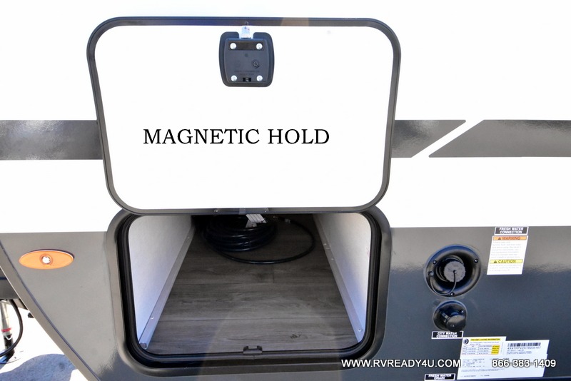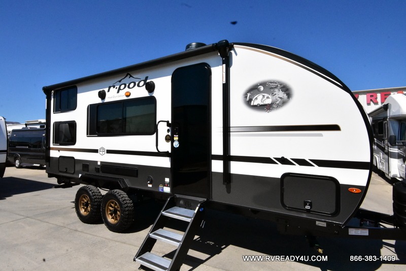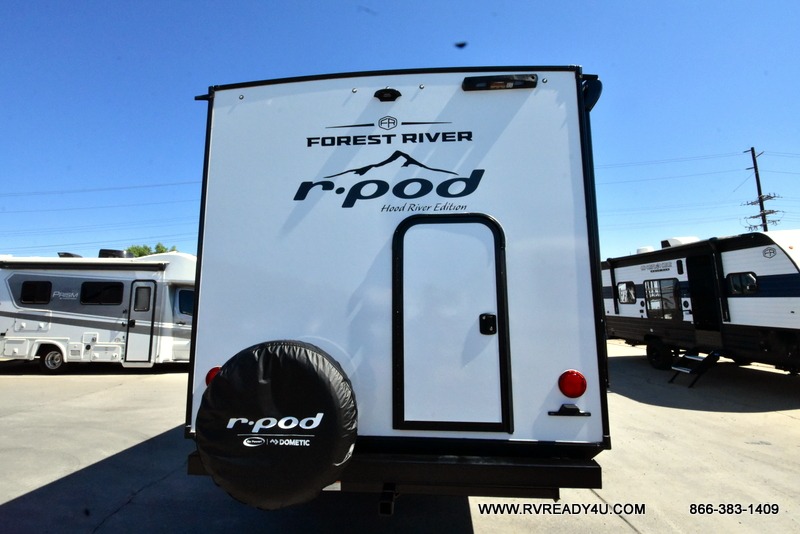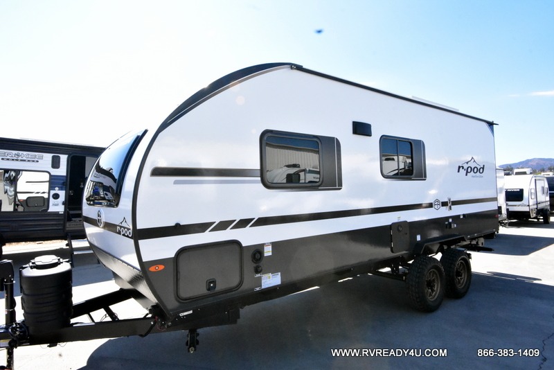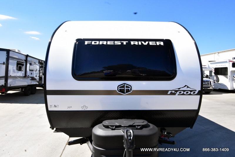 With any R-Pod travel trailer by Forest River, you will enjoy affordable luxury at the lowest tow weight in its class! There is a sealed underbelly with forced heat, a curved dual-pane acrylic front window with a bug screen and night shade, plus a large roof mounted solar panel for off-grid capabilities. The 15K A/C unit will keep you comfortable during the summer camping months, and the tankless water heater will provide endless hot showers after hiking, biking, swimming and more! Each model also includes a black glass friction hinge entrance door, roof ladder prep, exterior motion lighting, plus a hot and cold exterior spray port to wash off sand from the beach. Inside, you'll enjoy seamless Surf-X kitchen countertops, blackout roller shades, and a central vacuum system for hassle-free cleaning!