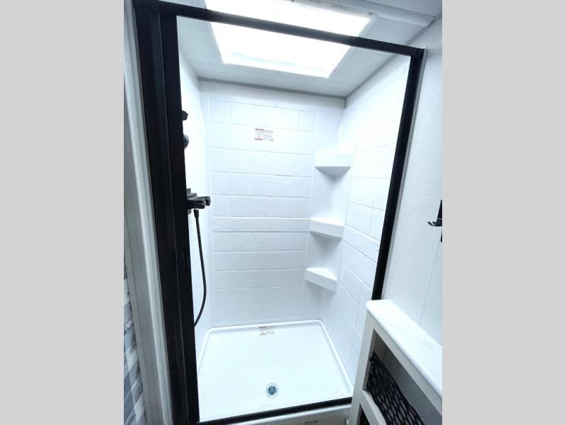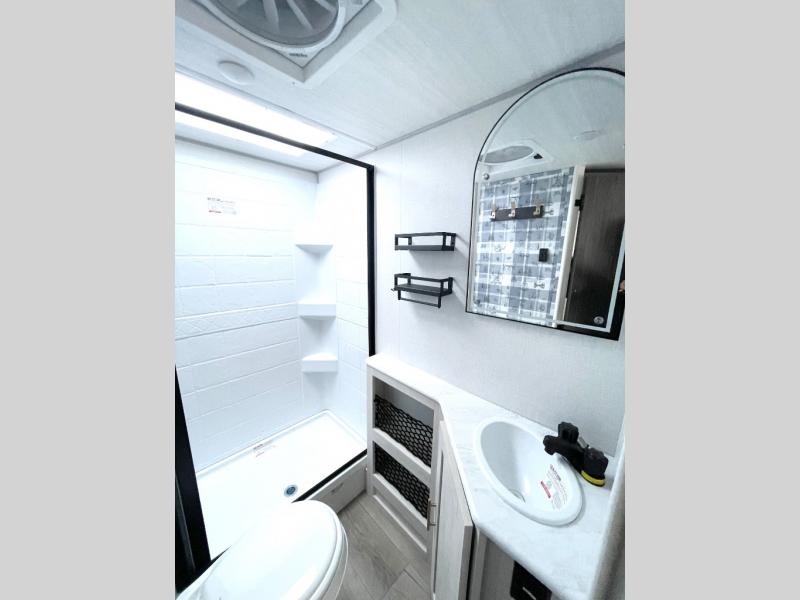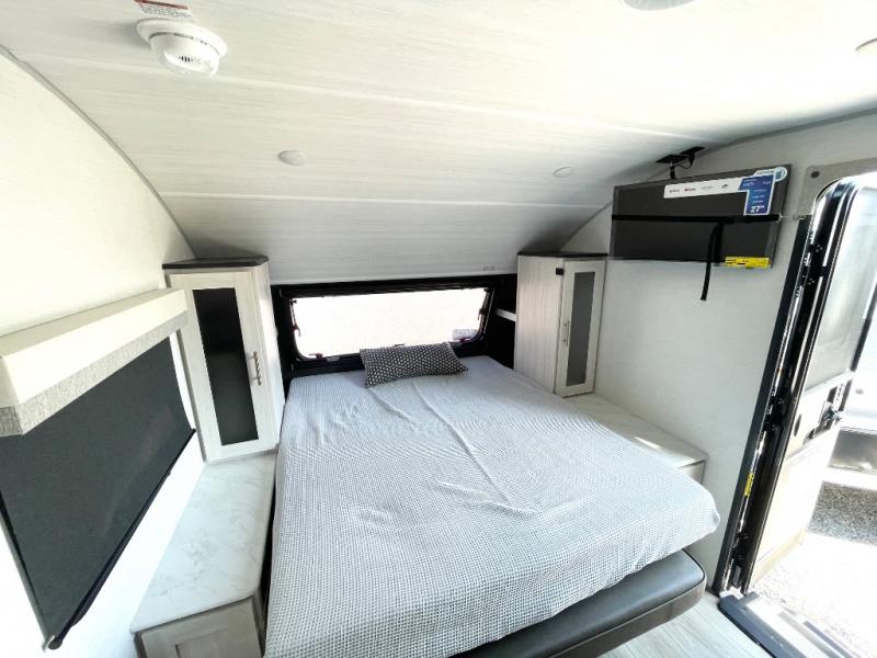 With any R-Pod travel trailer by Forest River, you will enjoy affordable luxury at the lowest tow weight in its class! There is a sealed underbelly with forced heat, a curved dual-pane acrylic front window with a bug screen and night shade, plus a large roof mounted solar panel for off-grid capabilities. The 15K A/C unit will keep you comfortable during the summer camping months, and the tankless water heater will provide endless hot showers after hiking, biking, swimming and more! Each model also includes a black glass friction hinge entrance door, roof ladder prep, exterior motion lighting, plus a hot and cold exterior spray port to wash off sand from the beach. Inside, you'll enjoy seamless Surf-X kitchen countertops, blackout roller shades, and a central vacuum system for hassle-free cleaning!