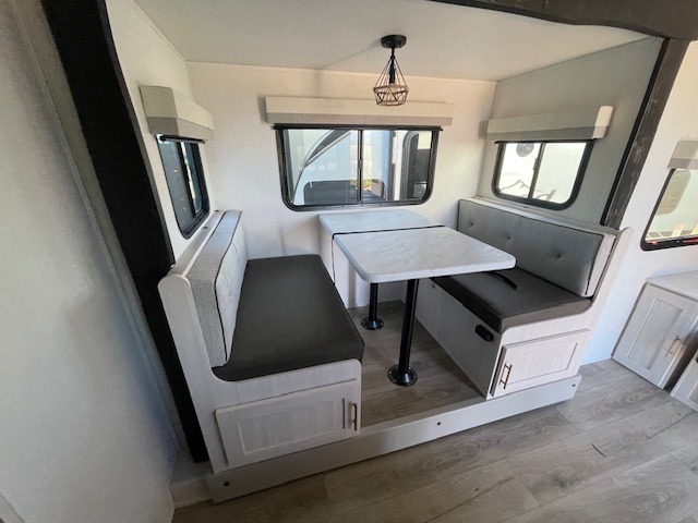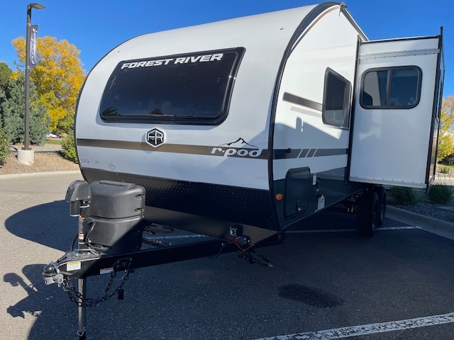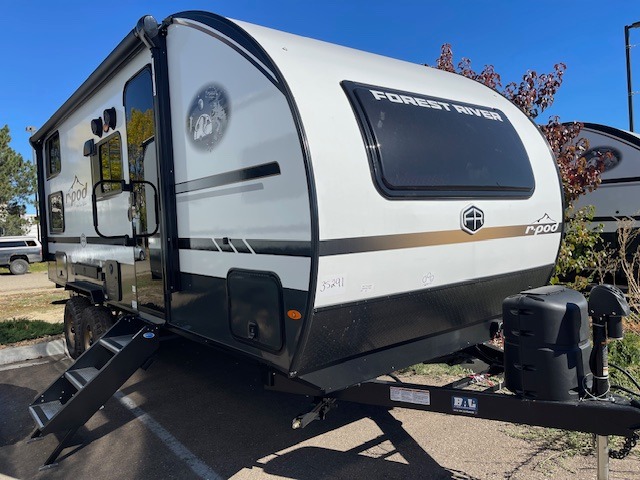 With any R-Pod travel trailer by Forest River, you will enjoy affordable luxury at the lowest tow weight in its class! There is a sealed underbelly with forced heat, a curved dual-pane acrylic front window with a bug screen and night shade, plus a large roof mounted solar panel for off-grid capabilities. The 15K A/C unit will keep you comfortable during the summer camping months, and the tankless water heater will provide endless hot showers after hiking, biking, swimming and more! Each model also includes a black glass friction hinge entrance door, roof ladder prep, exterior motion lighting, plus a hot and cold exterior spray port to wash off sand from the beach. Inside, you'll enjoy seamless Surf-X kitchen countertops, blackout roller shades, and a central vacuum system for hassle-free cleaning!