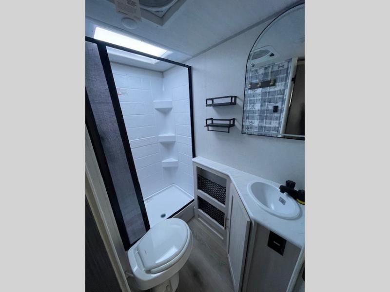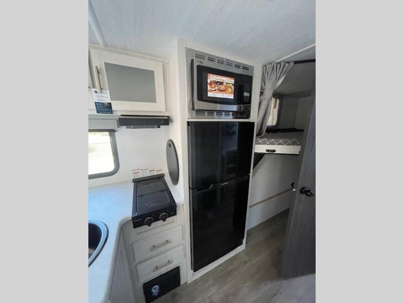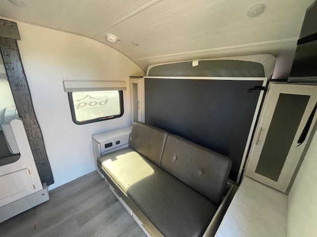 With any R-Pod travel trailer by Forest River, you will enjoy affordable luxury at the lowest tow weight in its class! There is a sealed underbelly with forced heat, a curved dual-pane acrylic front window with a bug screen and night shade, plus a large roof mounted solar panel for off-grid capabilities. The 15K A/C unit will keep you comfortable during the summer camping months, and the tankless water heater will provide endless hot showers after hiking, biking, swimming and more! Each model also includes a black glass friction hinge entrance door, roof ladder prep, exterior motion lighting, plus a hot and cold exterior spray port to wash off sand from the beach. Inside, you'll enjoy seamless Surf-X kitchen countertops, blackout roller shades, and a central vacuum system for hassle-free cleaning!