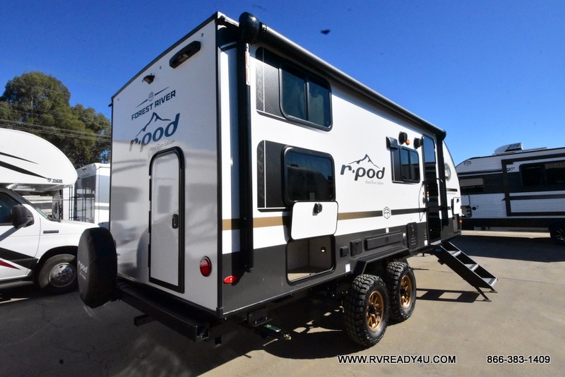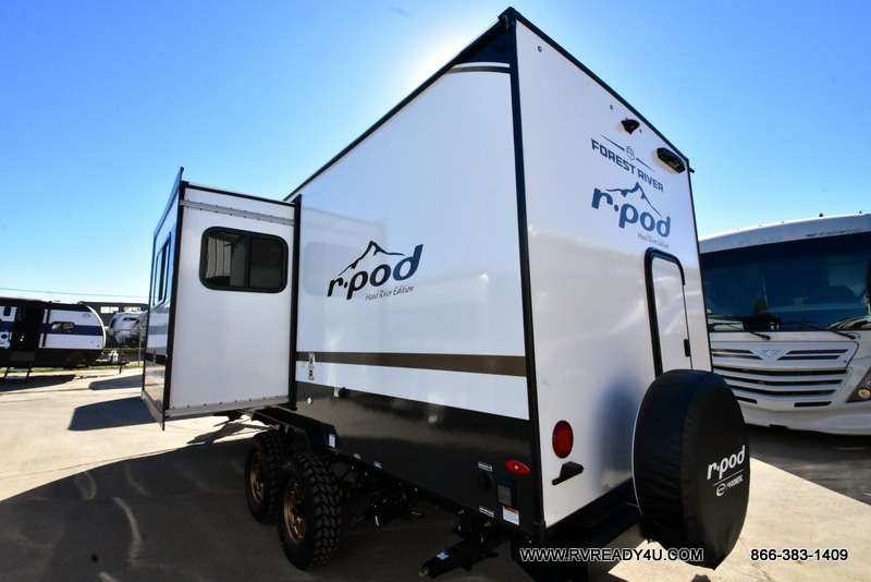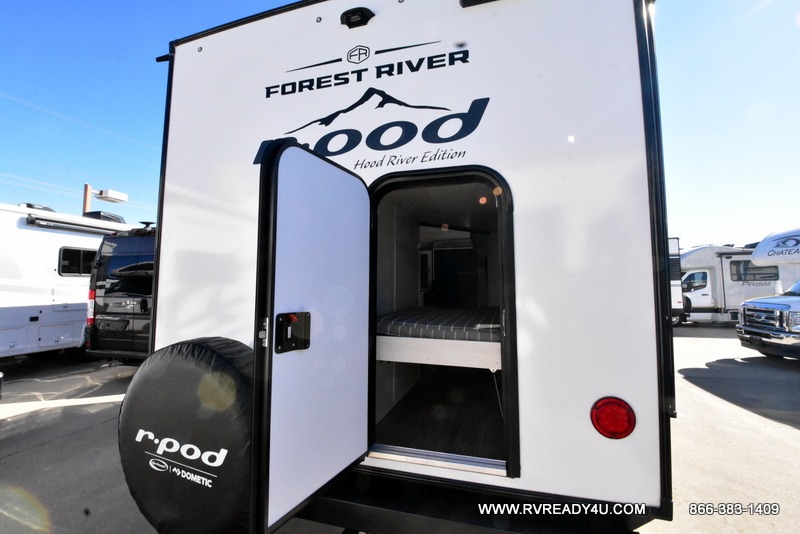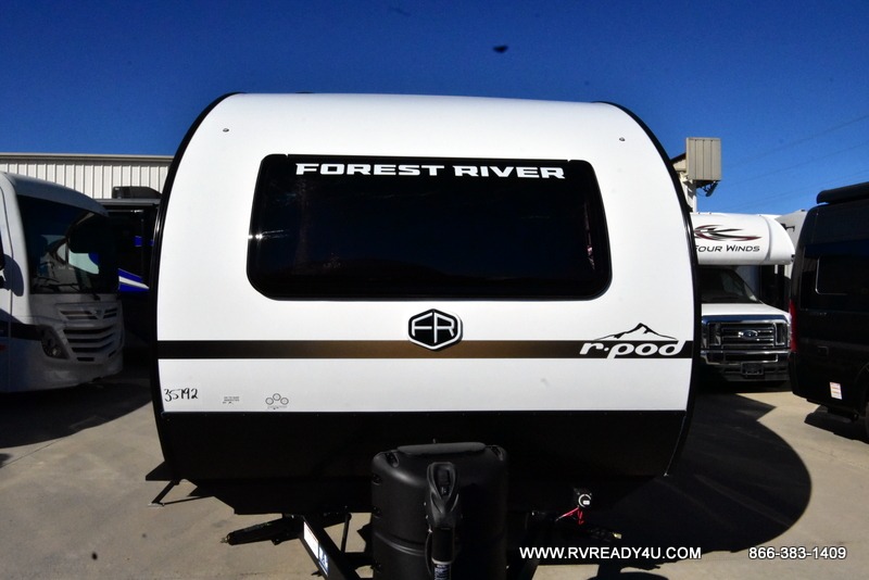 With any R-Pod travel trailer by Forest River, you will enjoy affordable luxury at the lowest tow weight in its class! There is a sealed underbelly with forced heat, a curved dual-pane acrylic front window with a bug screen and night shade, plus a large roof mounted solar panel for off-grid capabilities. The 15K A/C unit will keep you comfortable during the summer camping months, and the tankless water heater will provide endless hot showers after hiking, biking, swimming and more! Each model also includes a black glass friction hinge entrance door, roof ladder prep, exterior motion lighting, plus a hot and cold exterior spray port to wash off sand from the beach. Inside, you'll enjoy seamless Surf-X kitchen countertops, blackout roller shades, and a central vacuum system for hassle-free cleaning!