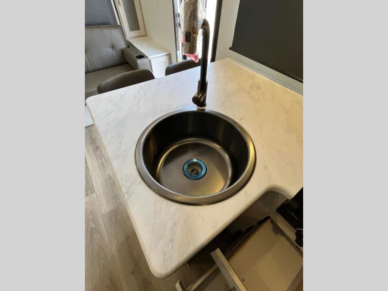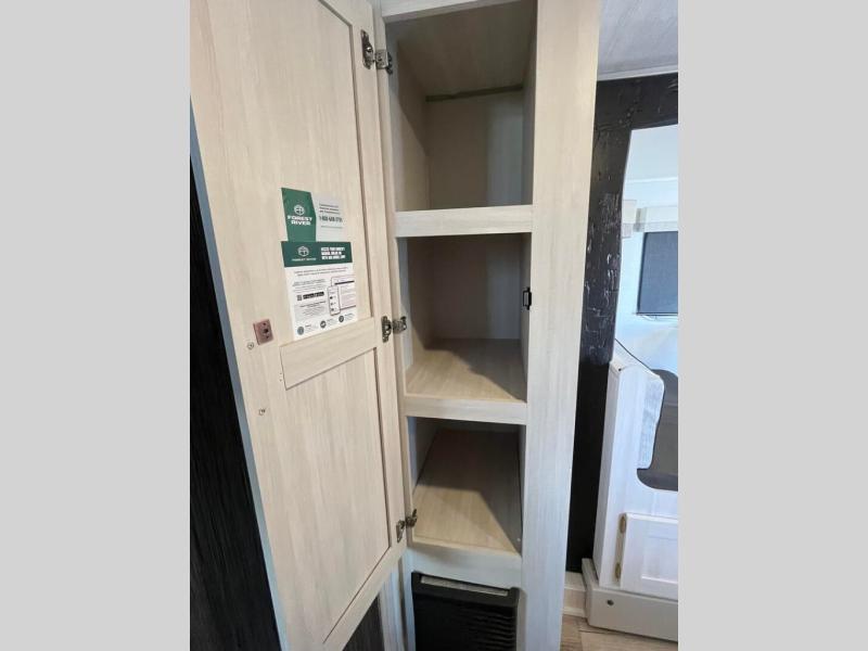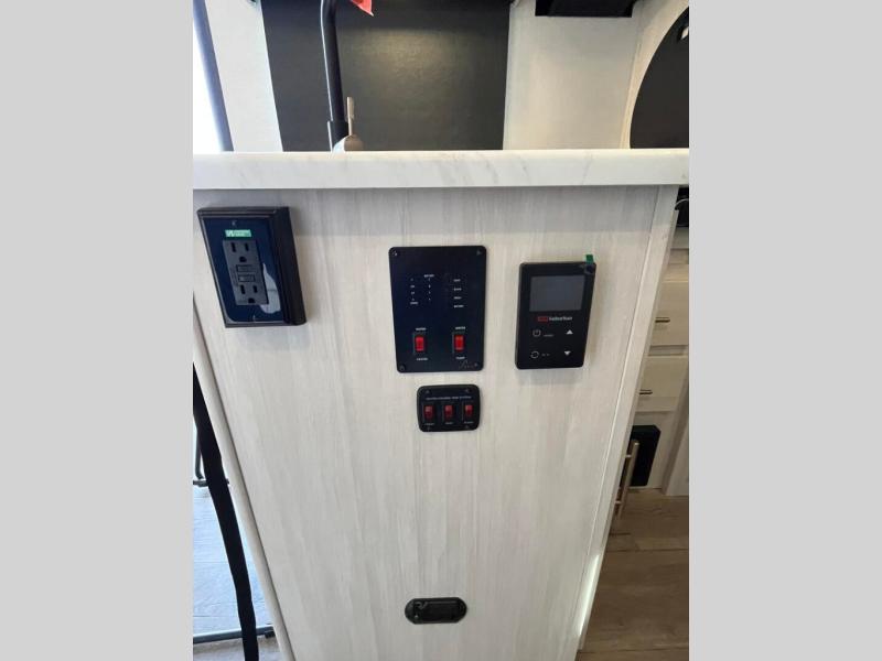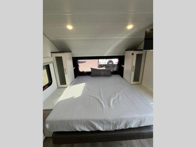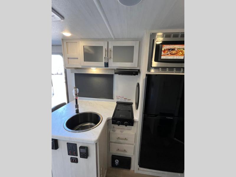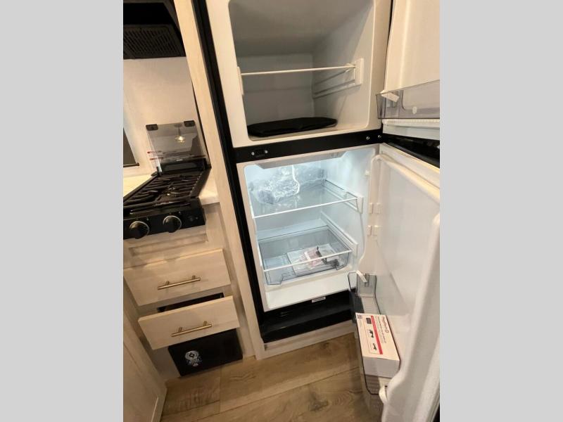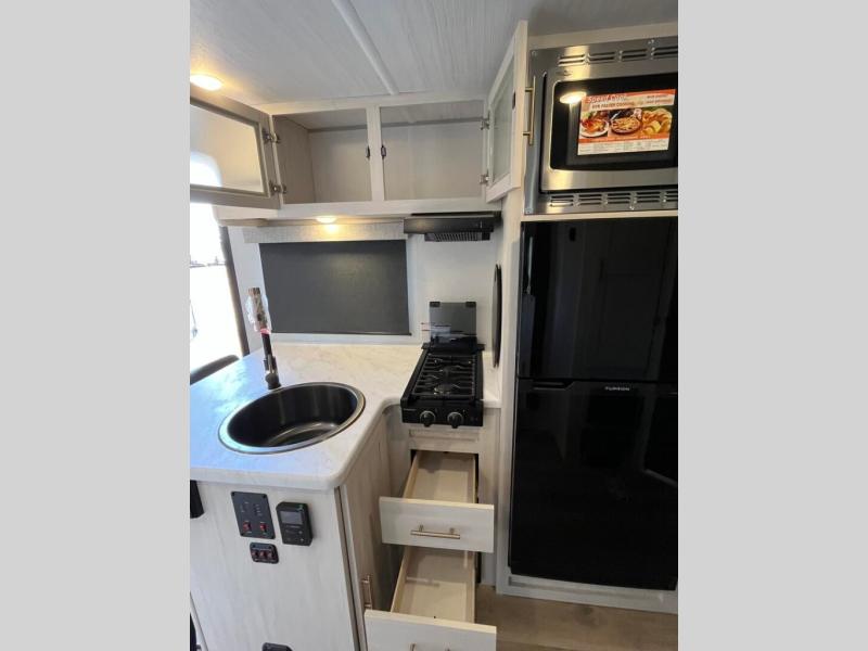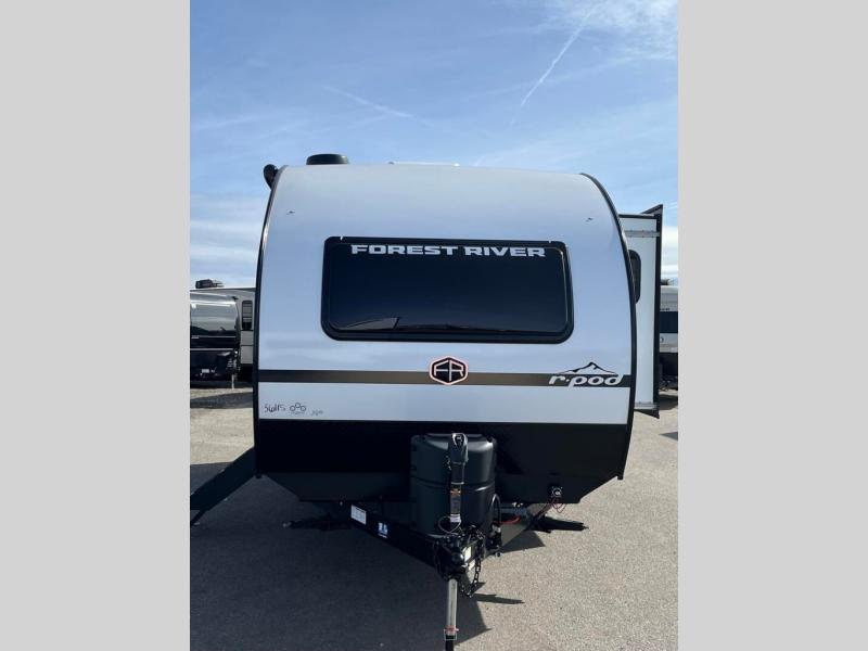 With any R-Pod travel trailer by Forest River, you will enjoy affordable luxury at the lowest tow weight in its class! There is a sealed underbelly with forced heat, a curved dual-pane acrylic front window with a bug screen and night shade, plus a large roof mounted solar panel for off-grid capabilities. The 15K A/C unit will keep you comfortable during the summer camping months, and the tankless water heater will provide endless hot showers after hiking, biking, swimming and more! Each model also includes a black glass friction hinge entrance door, roof ladder prep, exterior motion lighting, plus a hot and cold exterior spray port to wash off sand from the beach. Inside, you'll enjoy seamless Surf-X kitchen countertops, blackout roller shades, and a central vacuum system for hassle-free cleaning!