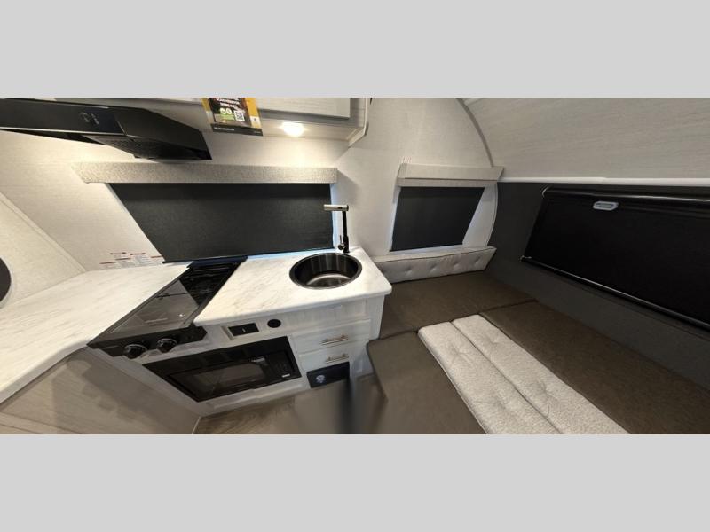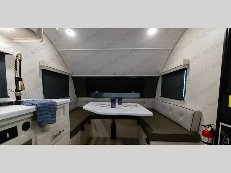 With any R-Pod travel trailer by Forest River, you will enjoy affordable luxury at the lowest tow weight in its class! There is a sealed underbelly with forced heat, a curved dual-pane acrylic front window with a bug screen and night shade, plus a large roof mounted solar panel for off-grid capabilities. The 15K A/C unit will keep you comfortable during the summer camping months, and the tankless water heater will provide endless hot showers after hiking, biking, swimming and more! Each model also includes a black glass friction hinge entrance door, roof ladder prep, exterior motion lighting, plus a hot and cold exterior spray port to wash off sand from the beach. Inside, you'll enjoy seamless Surf-X kitchen countertops, blackout roller shades, and a central vacuum system for hassle-free cleaning!