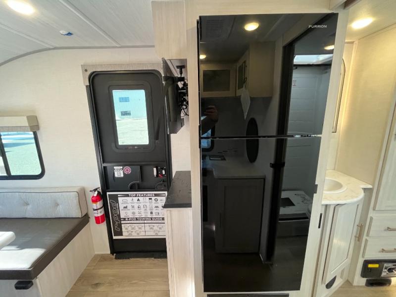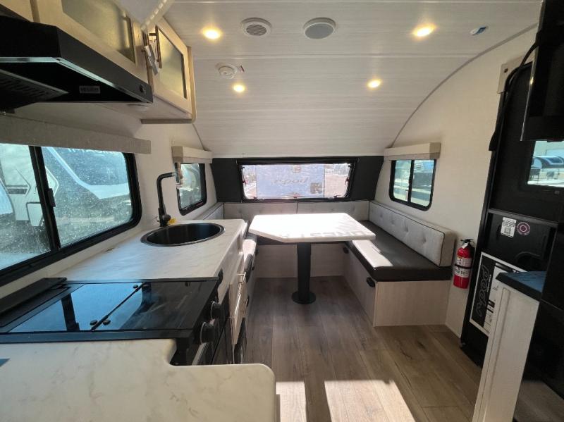 With any R-Pod travel trailer by Forest River, you will enjoy affordable luxury at the lowest tow weight in its class! There is a sealed underbelly with forced heat, a curved dual-pane acrylic front window with a bug screen and night shade, plus a large roof mounted solar panel for off-grid capabilities. The 15K A/C unit will keep you comfortable during the summer camping months, and the tankless water heater will provide endless hot showers after hiking, biking, swimming and more! Each model also includes a black glass friction hinge entrance door, roof ladder prep, exterior motion lighting, plus a hot and cold exterior spray port to wash off sand from the beach. Inside, you'll enjoy seamless Surf-X kitchen countertops, blackout roller shades, and a central vacuum system for hassle-free cleaning!