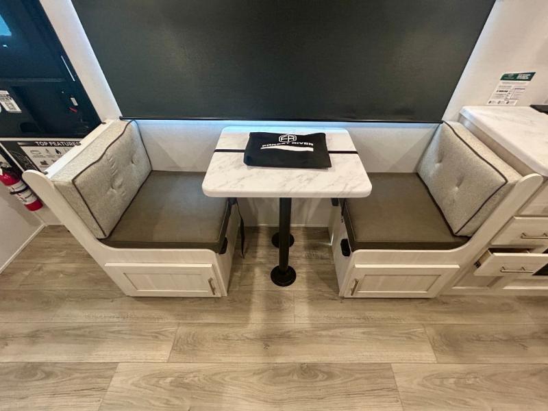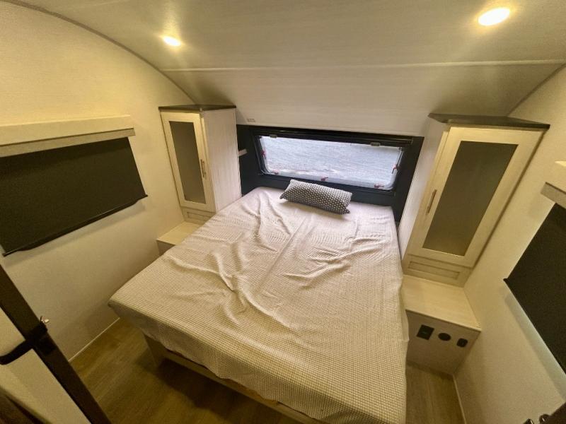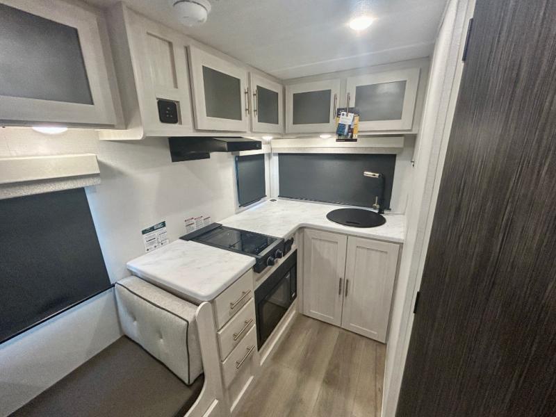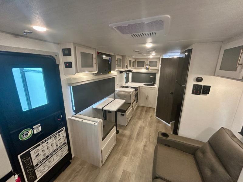 With any R-Pod travel trailer by Forest River, you will enjoy affordable luxury at the lowest tow weight in its class! There is a sealed underbelly with forced heat, a curved dual-pane acrylic front window with a bug screen and night shade, plus a large roof mounted solar panel for off-grid capabilities. The 15K A/C unit will keep you comfortable during the summer camping months, and the tankless water heater will provide endless hot showers after hiking, biking, swimming and more! Each model also includes a black glass friction hinge entrance door, roof ladder prep, exterior motion lighting, plus a hot and cold exterior spray port to wash off sand from the beach. Inside, you'll enjoy seamless Surf-X kitchen countertops, blackout roller shades, and a central vacuum system for hassle-free cleaning!