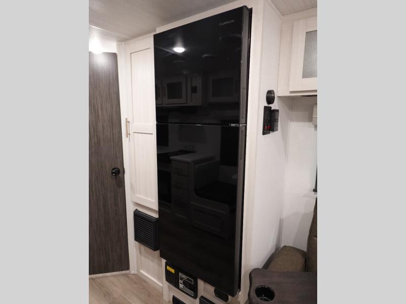 With any R-Pod travel trailer by Forest River, you will enjoy affordable luxury at the lowest tow weight in its class! There is a sealed underbelly with forced heat, a curved dual-pane acrylic front window with a bug screen and night shade, plus a large roof mounted solar panel for off-grid capabilities. The 15K A/C unit will keep you comfortable during the summer camping months, and the tankless water heater will provide endless hot showers after hiking, biking, swimming and more! Each model also includes a black glass friction hinge entrance door, roof ladder prep, exterior motion lighting, plus a hot and cold exterior spray port to wash off sand from the beach. Inside, you'll enjoy seamless Surf-X kitchen countertops, blackout roller shades, and a central vacuum system for hassle-free cleaning!