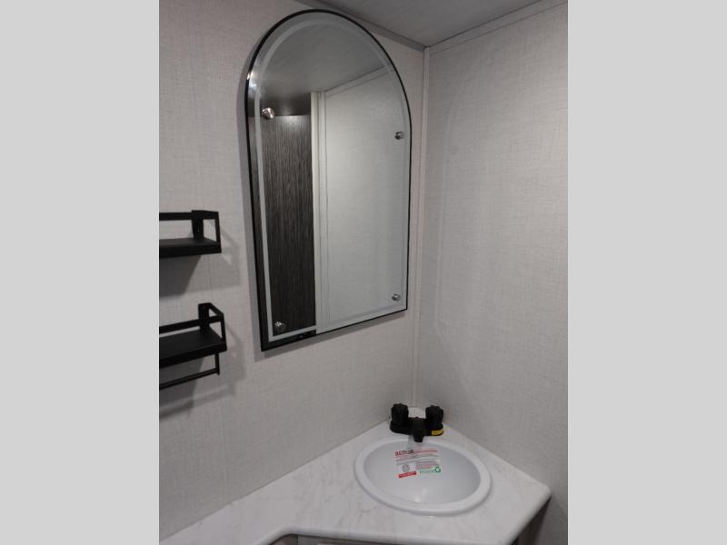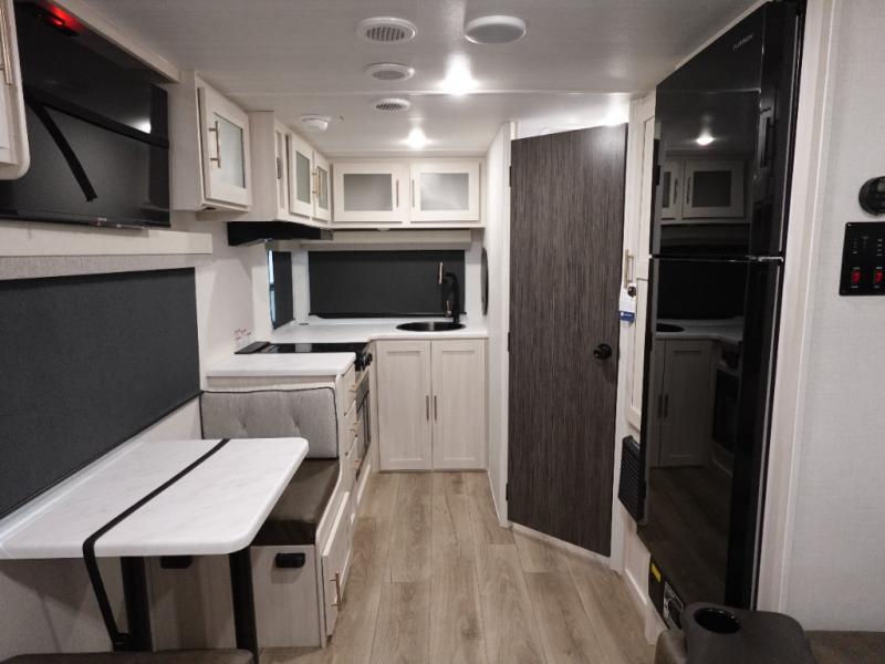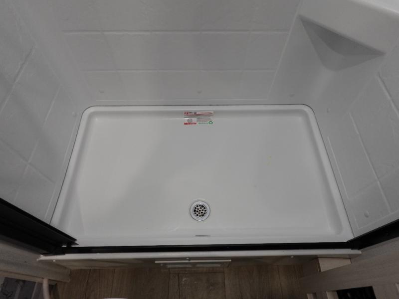With any R-Pod travel trailer by Forest River, you will enjoy affordable luxury at the lowest tow weight in its class! There is a sealed underbelly with forced heat, a curved dual-pane acrylic front window with a bug screen and night shade, plus a large roof mounted solar panel for off-grid capabilities. The 15K A/C unit will keep you comfortable during the summer camping months, and the tankless water heater will provide endless hot showers after hiking, biking, swimming and more! Each model also includes a black glass friction hinge entrance door, roof ladder prep, exterior motion lighting, plus a hot and cold exterior spray port to wash off sand from the beach. Inside, you'll enjoy seamless Surf-X kitchen countertops, blackout roller shades, and a central vacuum system for hassle-free cleaning!