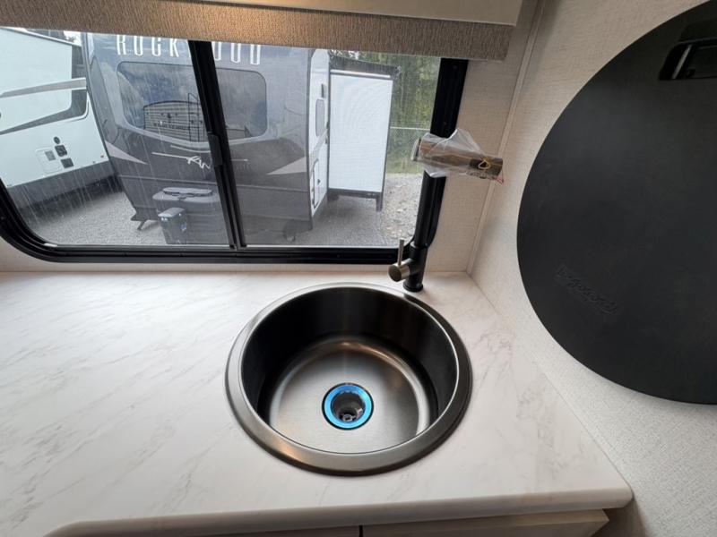 With any R-Pod travel trailer by Forest River, you will enjoy affordable luxury at the lowest tow weight in its class! There is a sealed underbelly with forced heat, a curved dual-pane acrylic front window with a bug screen and night shade, plus a large roof mounted solar panel for off-grid capabilities. The 15K A/C unit will keep you comfortable during the summer camping months, and the tankless water heater will provide endless hot showers after hiking, biking, swimming and more! Each model also includes a black glass friction hinge entrance door, roof ladder prep, exterior motion lighting, plus a hot and cold exterior spray port to wash off sand from the beach. Inside, you'll enjoy seamless Surf-X kitchen countertops, blackout roller shades, and a central vacuum system for hassle-free cleaning!