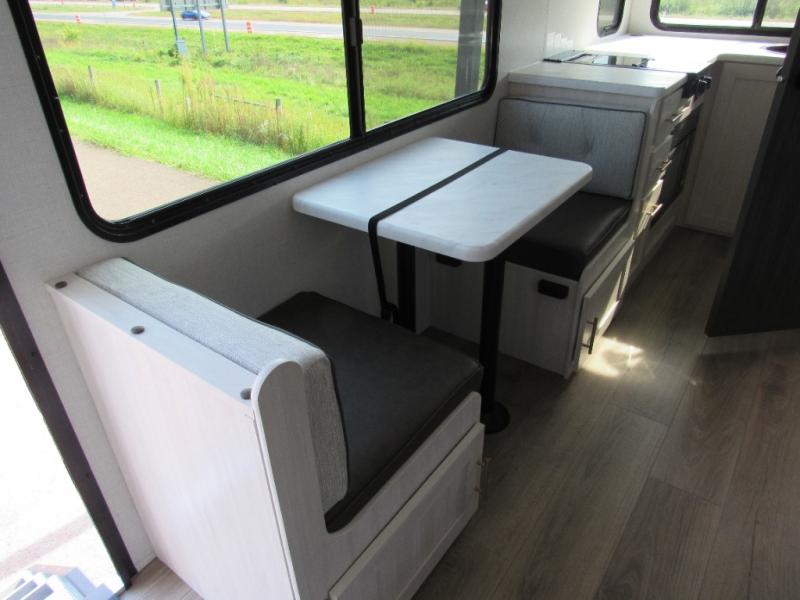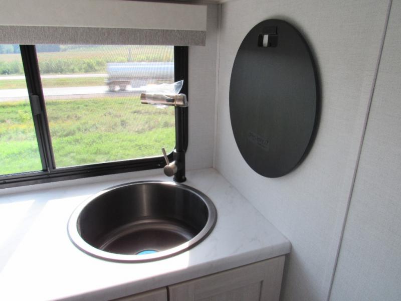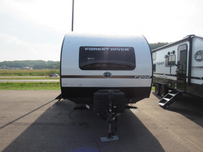 With any R-Pod travel trailer by Forest River, you will enjoy affordable luxury at the lowest tow weight in its class! There is a sealed underbelly with forced heat, a curved dual-pane acrylic front window with a bug screen and night shade, plus a large roof mounted solar panel for off-grid capabilities. The 15K A/C unit will keep you comfortable during the summer camping months, and the tankless water heater will provide endless hot showers after hiking, biking, swimming and more! Each model also includes a black glass friction hinge entrance door, roof ladder prep, exterior motion lighting, plus a hot and cold exterior spray port to wash off sand from the beach. Inside, you'll enjoy seamless Surf-X kitchen countertops, blackout roller shades, and a central vacuum system for hassle-free cleaning!