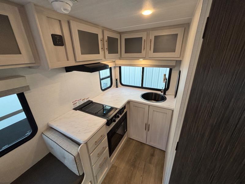 With any R-Pod travel trailer by Forest River, you will enjoy affordable luxury at the lowest tow weight in its class! There is a sealed underbelly with forced heat, a curved dual-pane acrylic front window with a bug screen and night shade, plus a large roof mounted solar panel for off-grid capabilities. The 15K A/C unit will keep you comfortable during the summer camping months, and the tankless water heater will provide endless hot showers after hiking, biking, swimming and more! Each model also includes a black glass friction hinge entrance door, roof ladder prep, exterior motion lighting, plus a hot and cold exterior spray port to wash off sand from the beach. Inside, you'll enjoy seamless Surf-X kitchen countertops, blackout roller shades, and a central vacuum system for hassle-free cleaning!