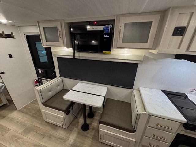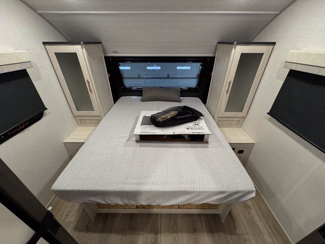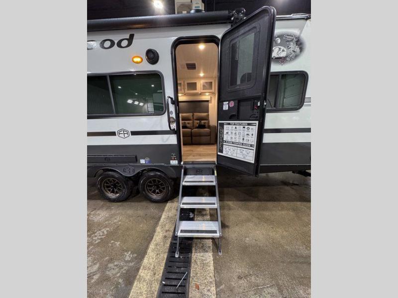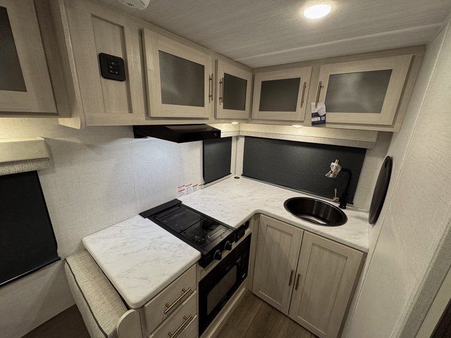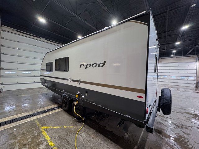 With any R-Pod travel trailer by Forest River, you will enjoy affordable luxury at the lowest tow weight in its class! There is a sealed underbelly with forced heat, a curved dual-pane acrylic front window with a bug screen and night shade, plus a large roof mounted solar panel for off-grid capabilities. The 15K A/C unit will keep you comfortable during the summer camping months, and the tankless water heater will provide endless hot showers after hiking, biking, swimming and more! Each model also includes a black glass friction hinge entrance door, roof ladder prep, exterior motion lighting, plus a hot and cold exterior spray port to wash off sand from the beach. Inside, you'll enjoy seamless Surf-X kitchen countertops, blackout roller shades, and a central vacuum system for hassle-free cleaning!