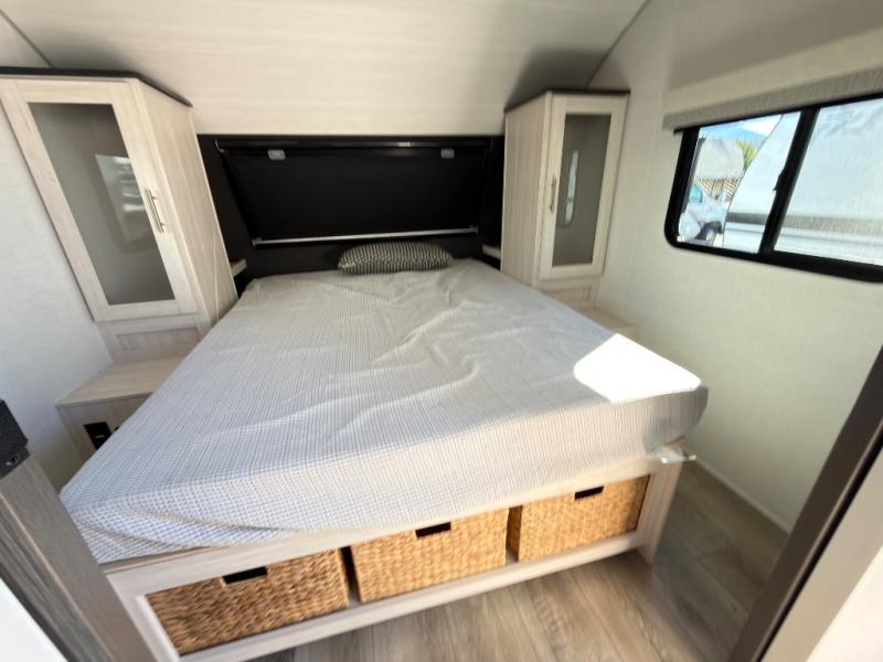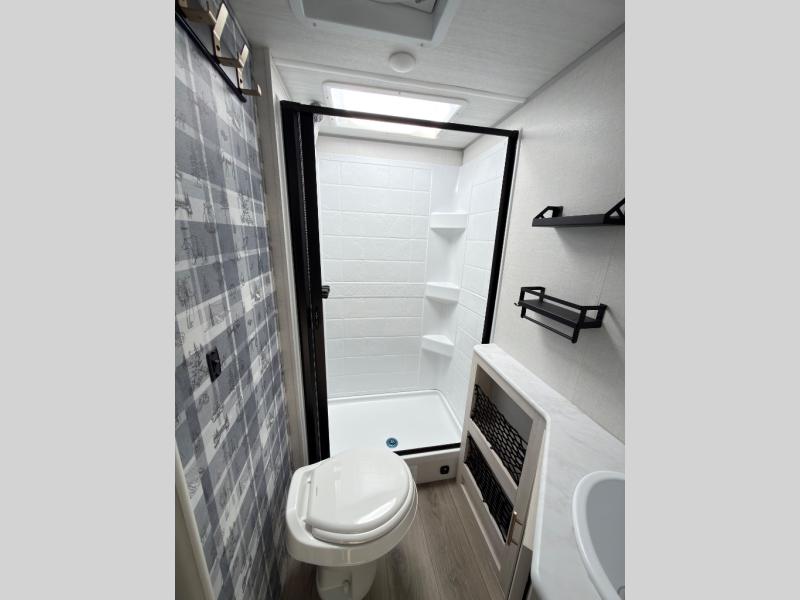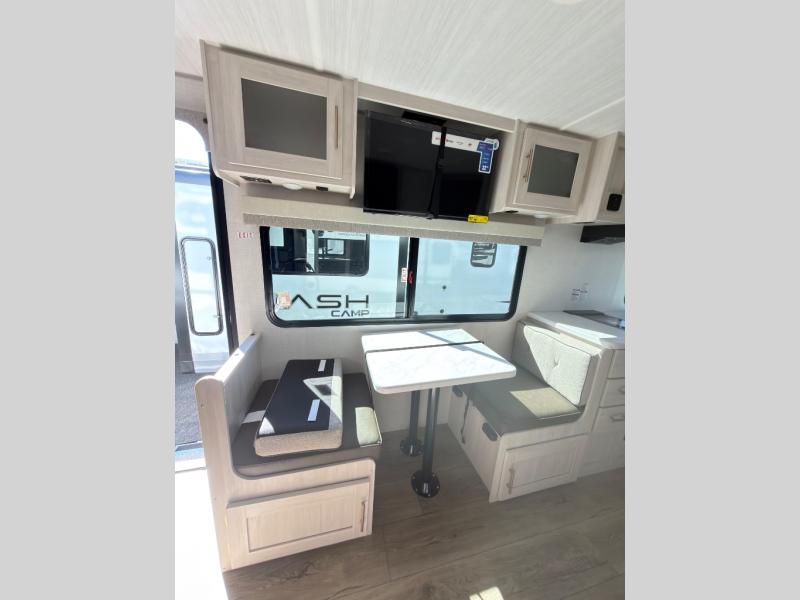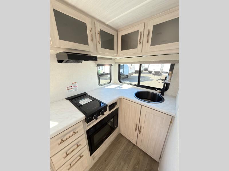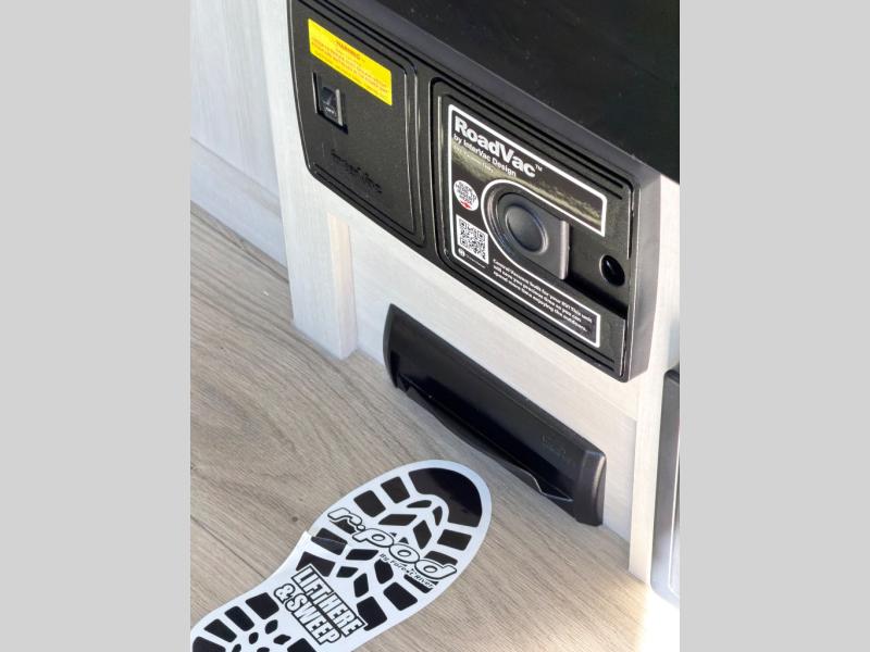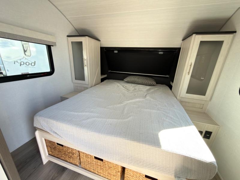 With any R-Pod travel trailer by Forest River, you will enjoy affordable luxury at the lowest tow weight in its class! There is a sealed underbelly with forced heat, a curved dual-pane acrylic front window with a bug screen and night shade, plus a large roof mounted solar panel for off-grid capabilities. The 15K A/C unit will keep you comfortable during the summer camping months, and the tankless water heater will provide endless hot showers after hiking, biking, swimming and more! Each model also includes a black glass friction hinge entrance door, roof ladder prep, exterior motion lighting, plus a hot and cold exterior spray port to wash off sand from the beach. Inside, you'll enjoy seamless Surf-X kitchen countertops, blackout roller shades, and a central vacuum system for hassle-free cleaning!
