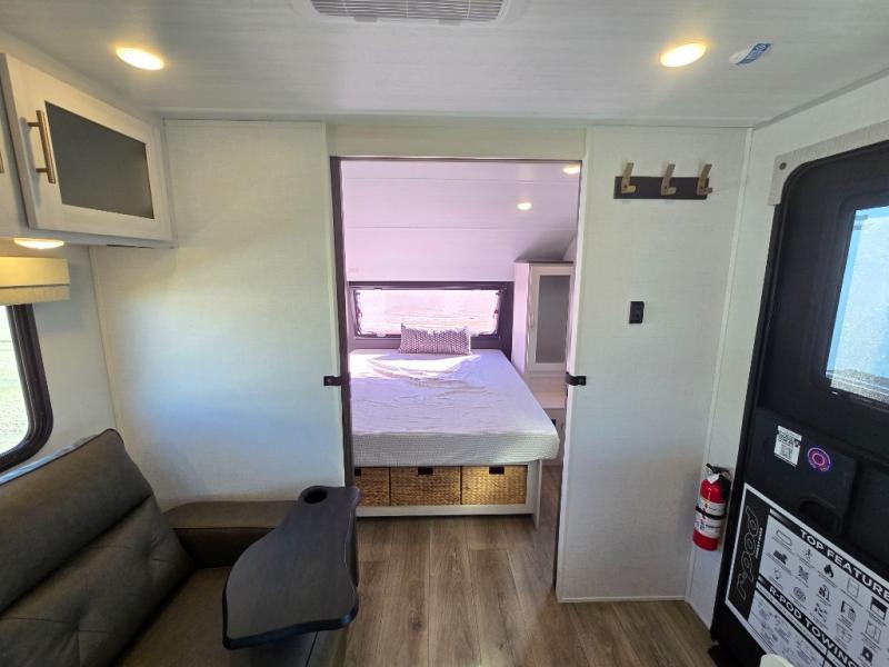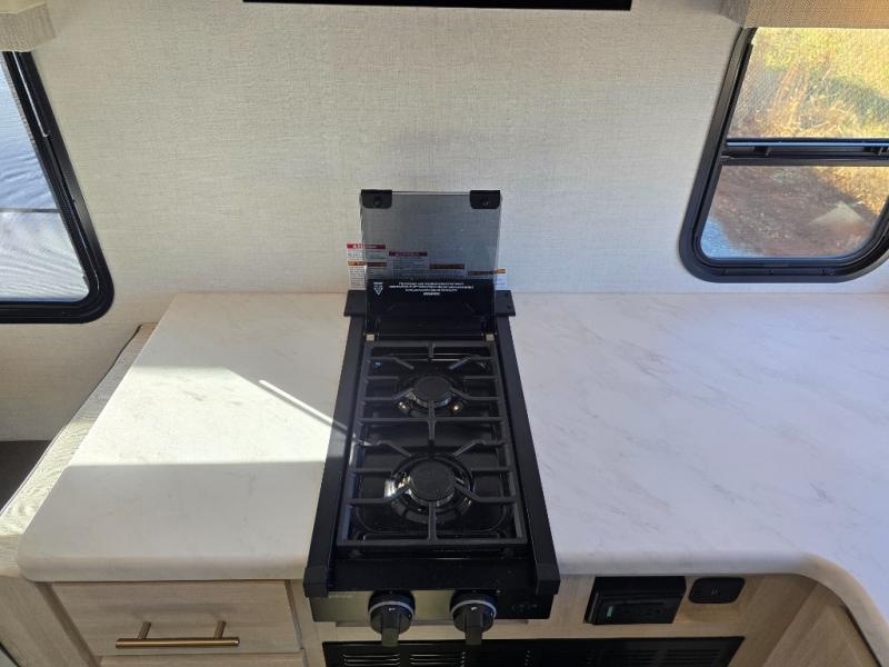 With any R-Pod travel trailer by Forest River, you will enjoy affordable luxury at the lowest tow weight in its class! There is a sealed underbelly with forced heat, a curved dual-pane acrylic front window with a bug screen and night shade, plus a large roof mounted solar panel for off-grid capabilities. The 15K A/C unit will keep you comfortable during the summer camping months, and the tankless water heater will provide endless hot showers after hiking, biking, swimming and more! Each model also includes a black glass friction hinge entrance door, roof ladder prep, exterior motion lighting, plus a hot and cold exterior spray port to wash off sand from the beach. Inside, you'll enjoy seamless Surf-X kitchen countertops, blackout roller shades, and a central vacuum system for hassle-free cleaning!