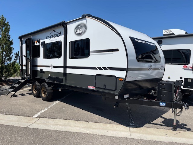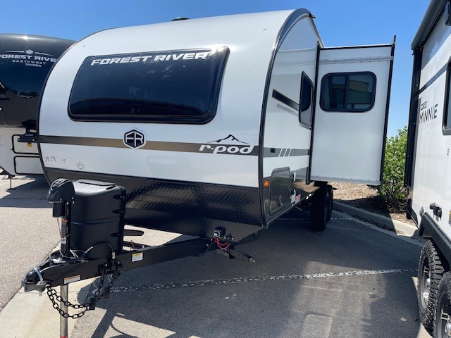 With any R-Pod travel trailer by Forest River, you will enjoy affordable luxury at the lowest tow weight in its class! There is a sealed underbelly with forced heat, a curved dual-pane acrylic front window with a bug screen and night shade, plus a large roof mounted solar panel for off-grid capabilities. The 15K A/C unit will keep you comfortable during the summer camping months, and the tankless water heater will provide endless hot showers after hiking, biking, swimming and more! Each model also includes a black glass friction hinge entrance door, roof ladder prep, exterior motion lighting, plus a hot and cold exterior spray port to wash off sand from the beach. Inside, you'll enjoy seamless Surf-X kitchen countertops, blackout roller shades, and a central vacuum system for hassle-free cleaning!