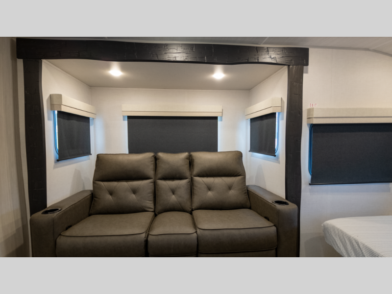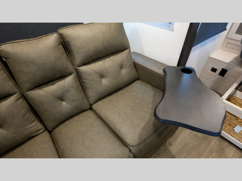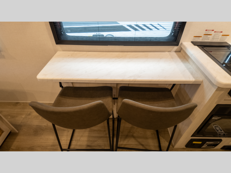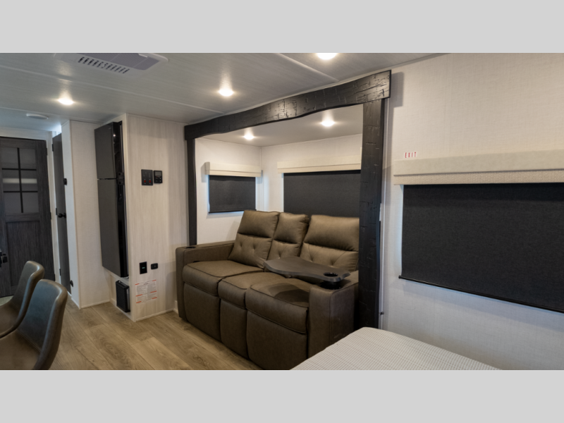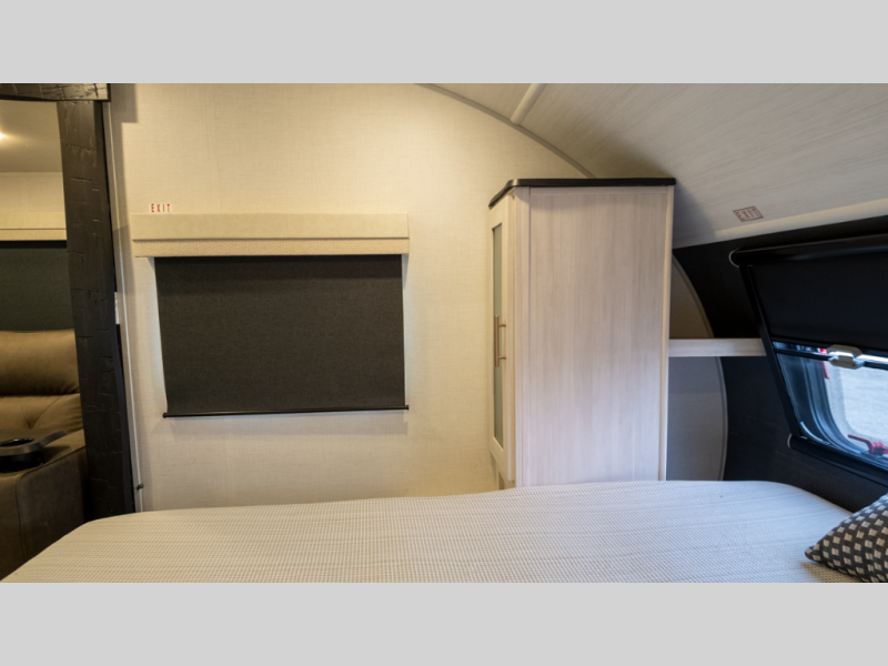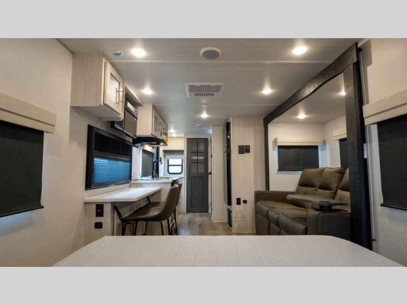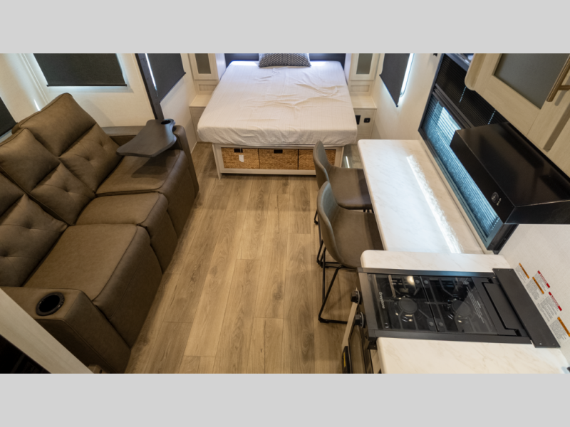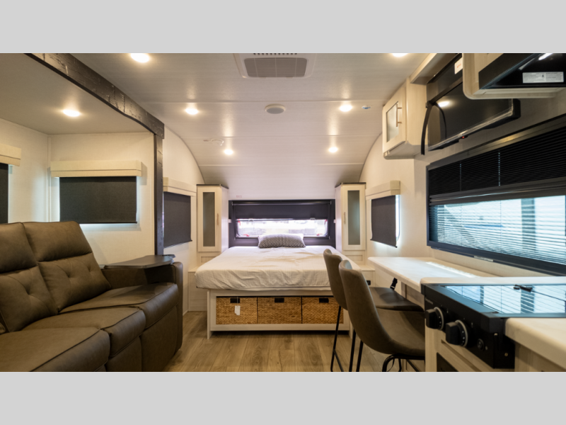 - Flexible interior: Murphy bed converts between sofa and queen, plus booth dinette