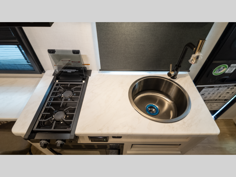 - Outdoor ready: Slide-out griddle under awning, solar prep, backup camera prep