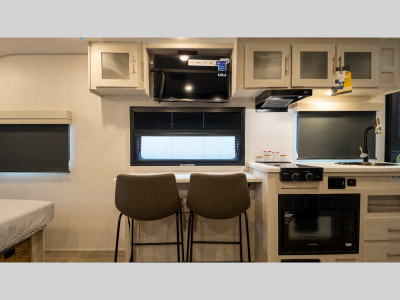 A: The RP-206 delivers a Murphy bed, booth dinette, full wet bath, indoor kitchen, and an outdoor griddle—all within a lightweight 20-ft frame perfect for quick getaways and effortless towing.