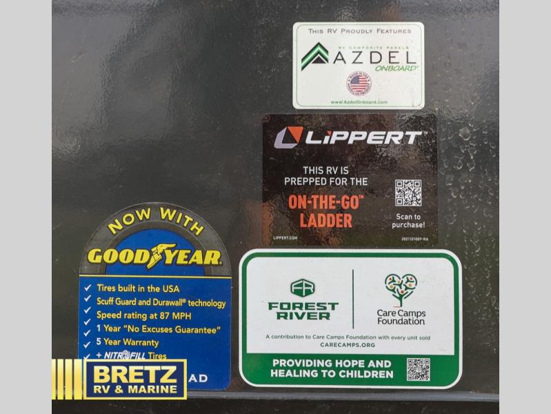 With any R-Pod travel trailer by Forest River, you will enjoy affordable luxury at the lowest tow weight in its class! There is a sealed underbelly with forced heat, a curved dual-pane acrylic front window with a bug screen and night shade, plus a large roof mounted solar panel for off-grid capabilities. The 15K A/C unit will keep you comfortable during the summer camping months, and the tankless water heater will provide endless hot showers after hiking, biking, swimming and more! Each model also includes a black glass friction hinge entrance door, roof ladder prep, exterior motion lighting, plus a hot and cold exterior spray port to wash off sand from the beach. Inside, you'll enjoy seamless Surf-X kitchen countertops, blackout roller shades, and a central vacuum system for hassle-free cleaning!